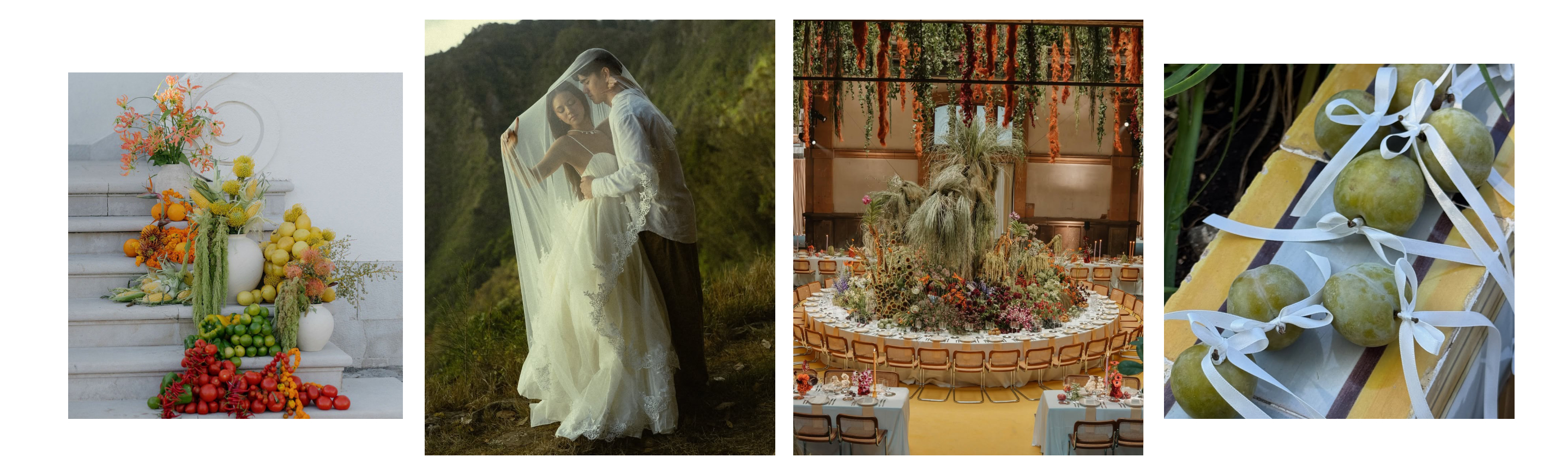 But this trend doesn’t stop at visuals—tomatoes are just as impactful on the wedding menu. From delicate tarts to rustic focaccia, they add seasonal flavor while doubling as edible design. Their natural variety in colors—scarlet, golden, green—makes every dish look like it belongs in a styled editorial.