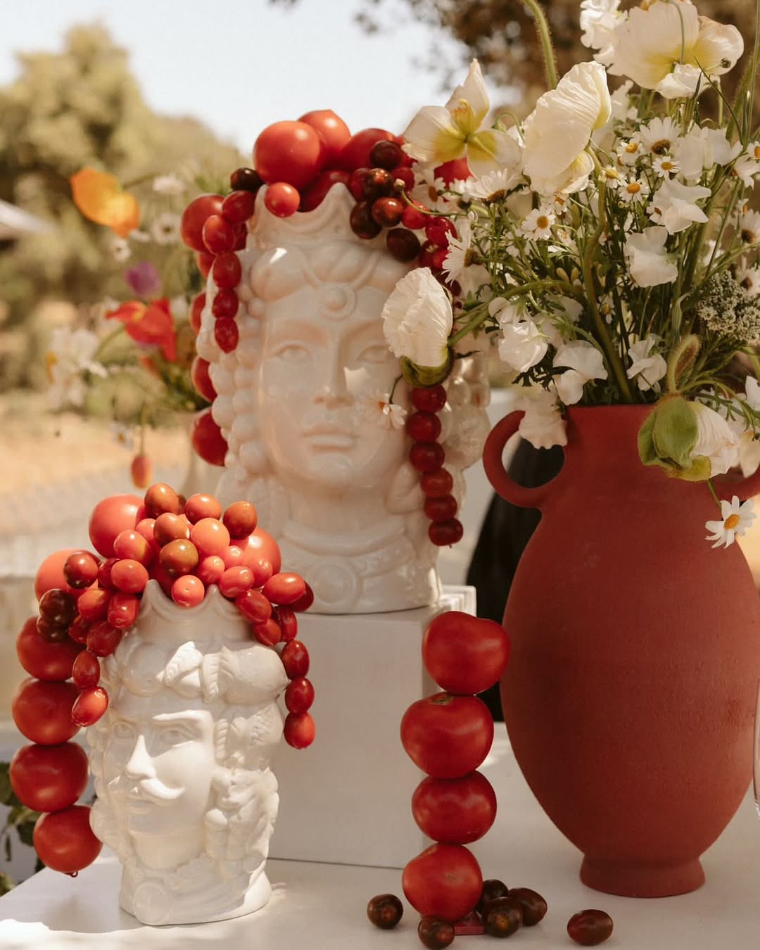 Tomatoes are stealing the spotlight, proving they’re more than just a kitchen staple. With their bold colors and natural shine, they bring a playful Mediterranean energy that feels both modern and timeless. Styled creatively, they can shift from rustic charm to high-fashion statement pieces, making them one of the most versatile décor elements of the season.