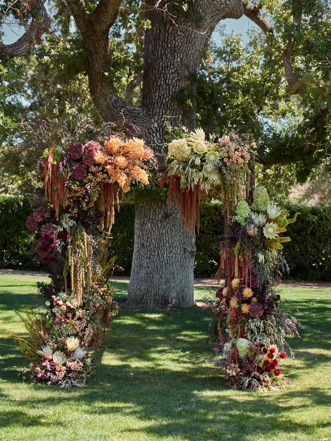 - Frame entrances or arches with a blend of dried + fresh florals for a rich, dramatic finish.