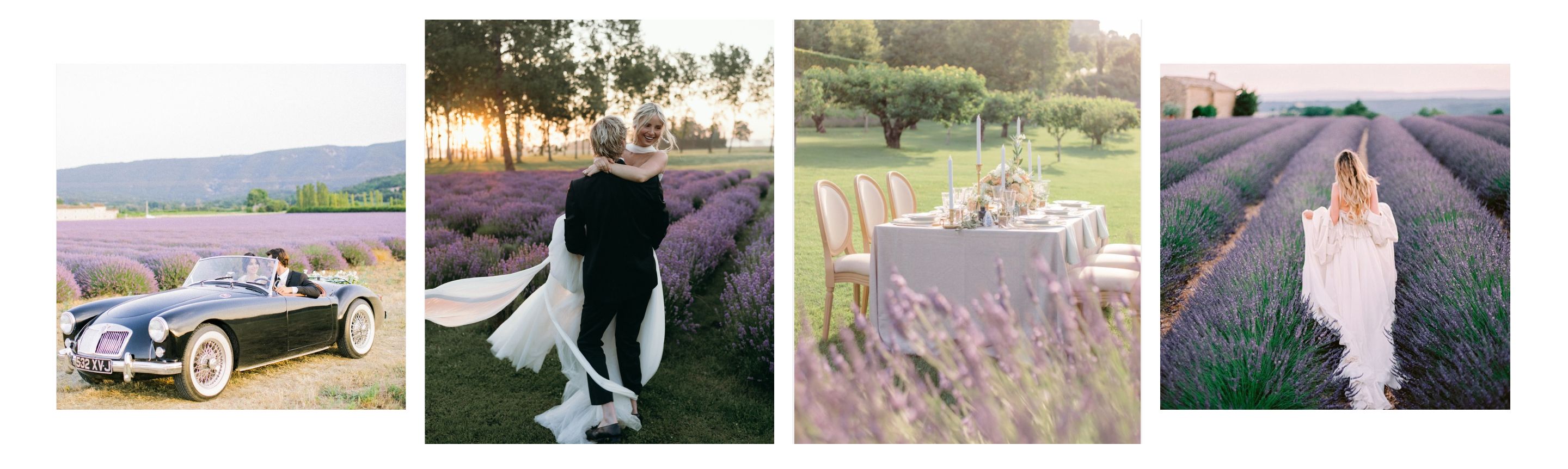 Capturing wedding photos amidst the lavender fields of Provence, France, offers couples a truly enchanting and memorable experience. The vibrant purple hues of the lavender, combined with the natural beauty of the countryside, create a romantic and picturesque backdrop that symbolizes love and tranquility. The golden light of sunrise and sunset adds a magical touch, casting a warm glow over the fields and enhancing every photograph with a timeless elegance. Beyond the visual appeal, Provence's rich cultural heritage, from traditional markets to local festivals and lavender-themed products, adds depth and authenticity to the photo sessions, enriching the narrative and ambiance of the day. Whether amidst charming stone farmhouses, historic châteaux, or olive groves, Provence offers diverse settings that cater to every couple's vision for their special day, ensuring that each moment captured reflects the beauty and romance of this iconic region.