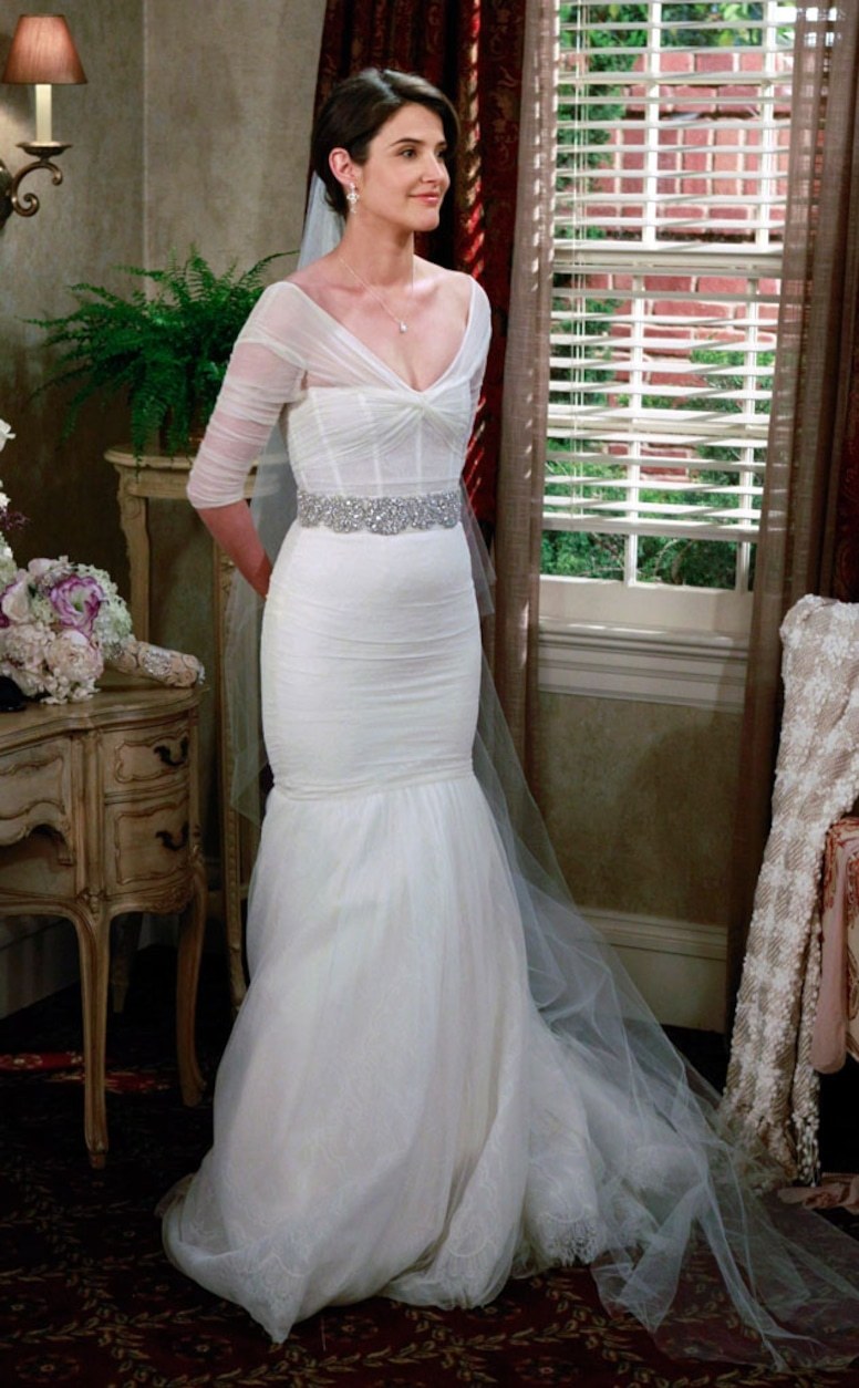 When Robin Scherbatsky walked down the aisle, her dress felt like a deep breath — elegant, unfussy, and quietly powerful. It wasn’t about tulle explosions or dramatic trains; it was about confidence.