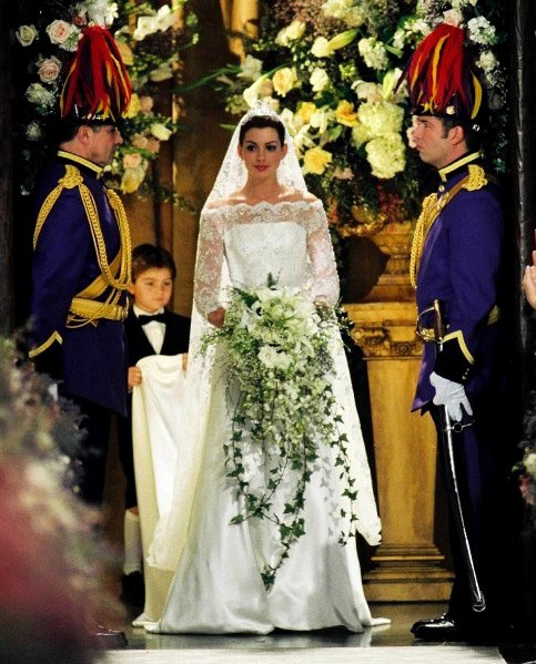 Anne Hathaway’s royal transformation reached its peak in The Princess Diaries 2, and her wedding gown was nothing short of majestic. Designed by Vera Wang, the dress embodied every inch of a fairytale — sophisticated, graceful, and fit for modern royalty.
