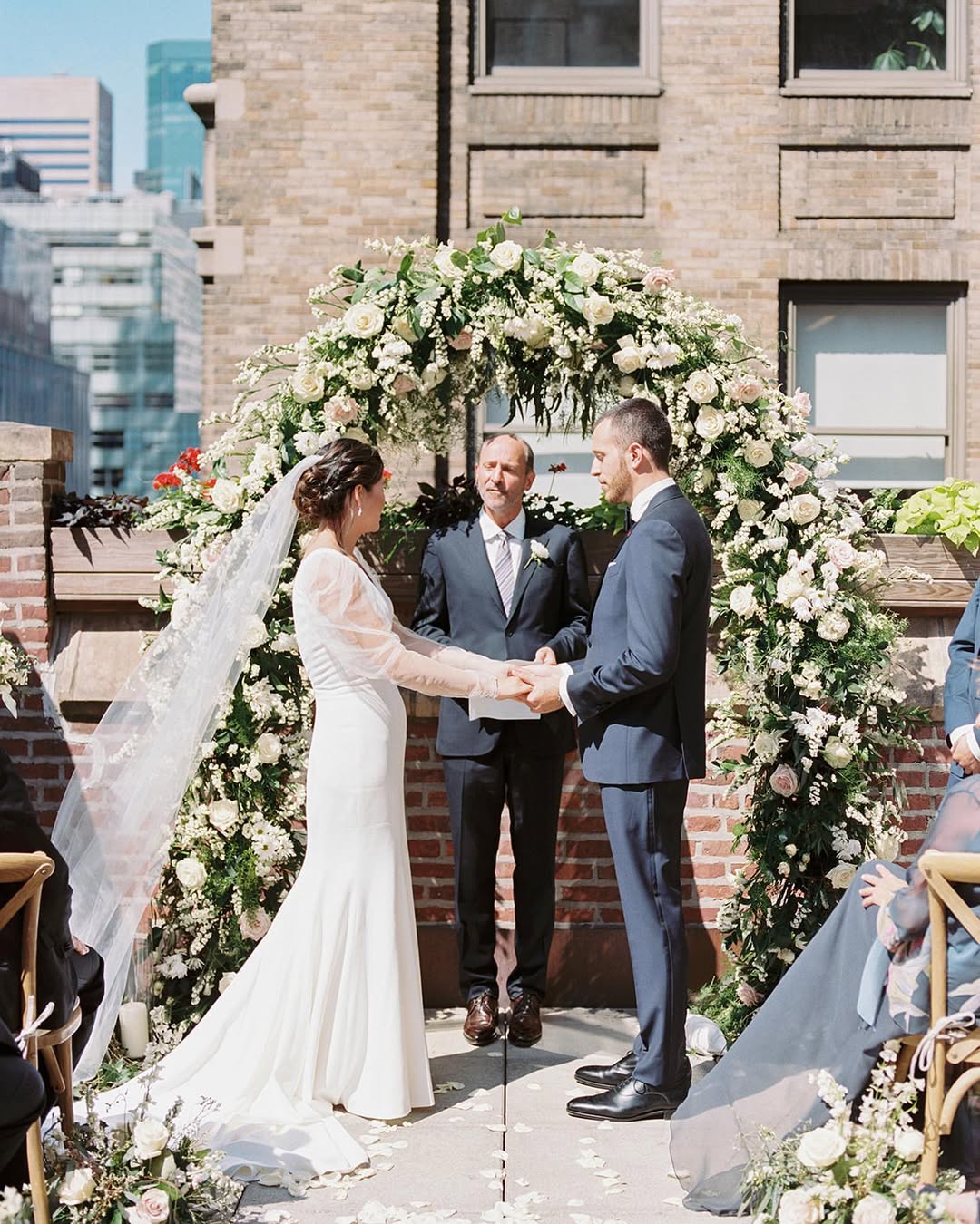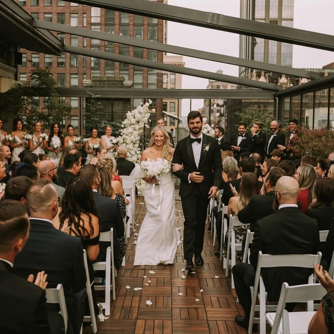 Midtown Loft & Terrace is one of the most popular small wedding venues in New York that gives you both indoor comfort and real rooftop magic in the same place. The terrace sits right above Fifth Avenue, with string lights, planters, and skyline views that feel close enough to touch. Inside, the loft has warm wood floors, simple décor, and big windows - nothing fussy, just a clean space that works for any style.