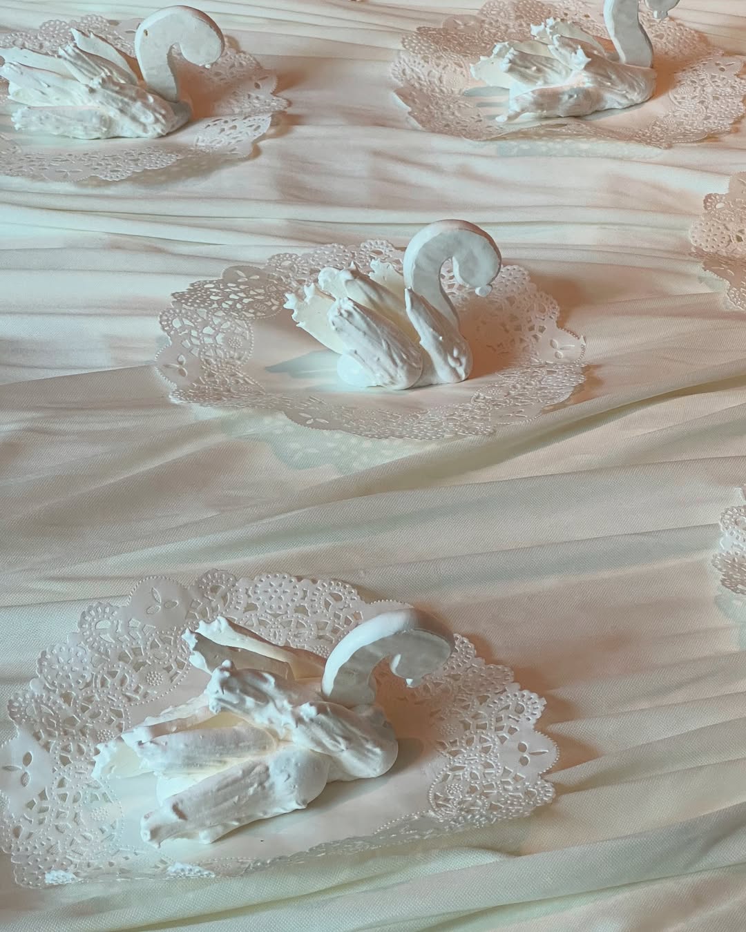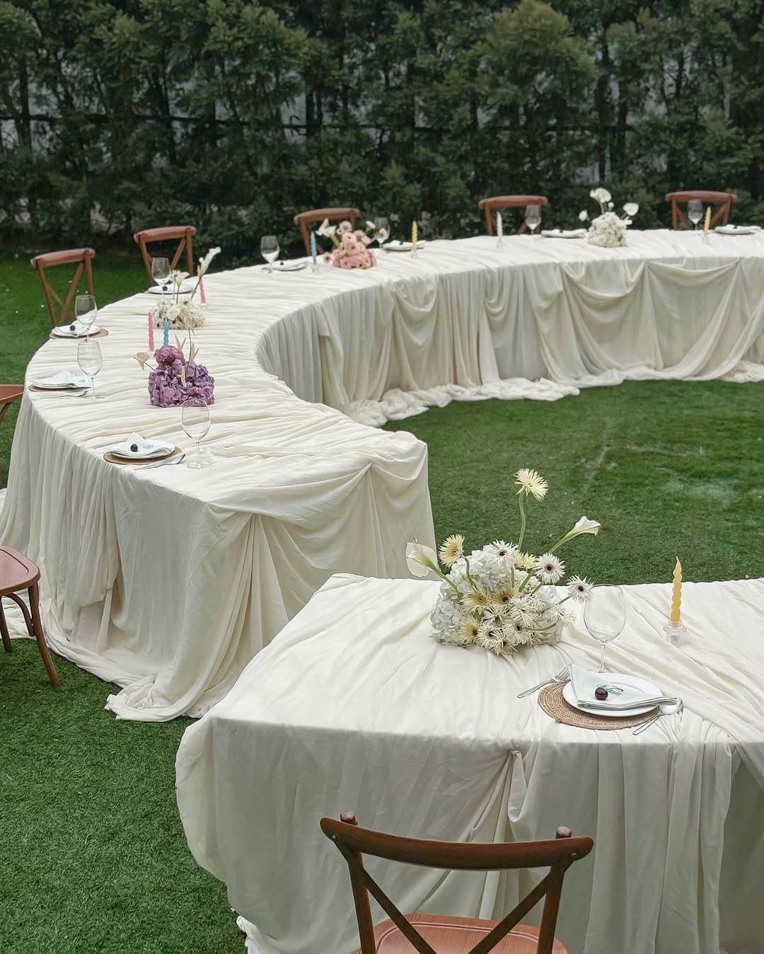 Cloud Dancer’s gentle, airy presence transforms wedding decor, especially when fabrics take center stage. Imagine billowing textiles, cascading linens, and installations that seem to float, all celebrating movement and texture. Ceremony backdrops layered with sheer Cloud Dancer fabrics and soft neutrals create a dreamy sense of depth, letting light and shadow play instead of relying on bold colors. Tables dressed in Cloud Dancer linens become blank slates for creativity: flowers pop with color, candlelight glows more warmly, and even the simplest glassware takes on a refined elegance.