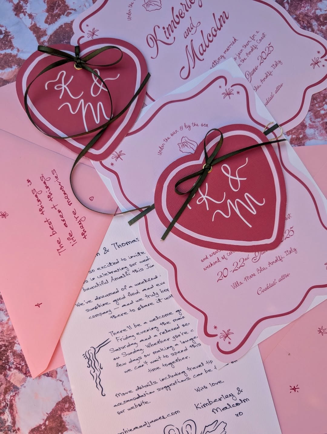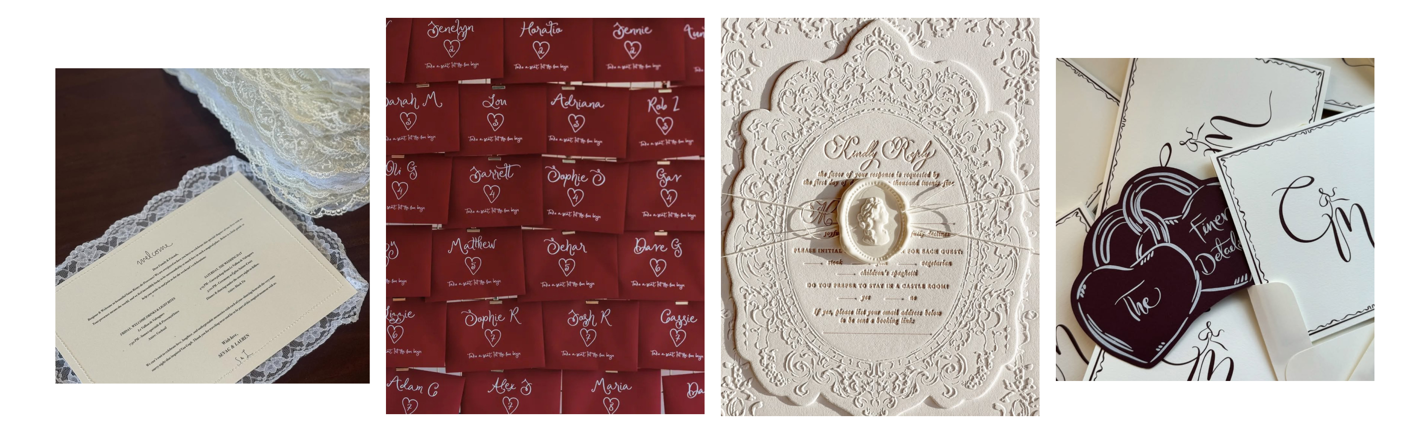 - Aesthetic cohesion: The art style connects save-the-dates, invitations, programs, menus, and thank-you cards