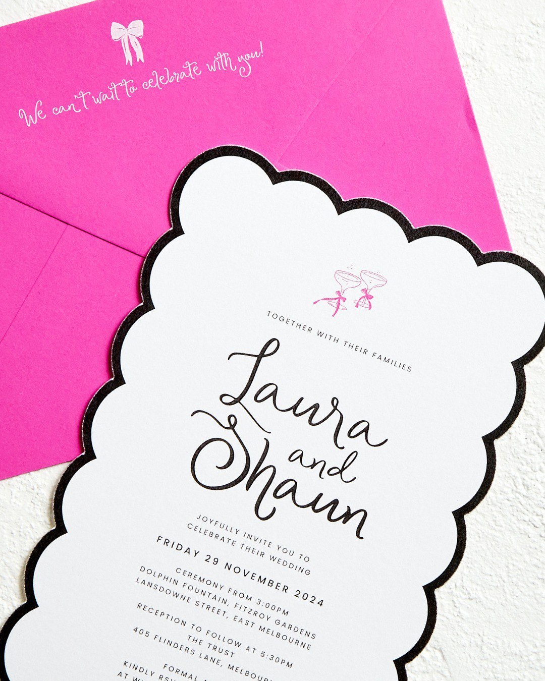 These creative wedding invitations are perfect for stylish celebrations with a 'creative black tie' dress code, held in an art gallery or a modern loft. They make it clear this is not a traditional wedding. You can expect personality, surprises and a celebration that puts joy and being yourself first. For the right couple, these bold, playful invitations do more than announce a wedding. They set the mood, promise a party and promise guests an experience they will never forget.