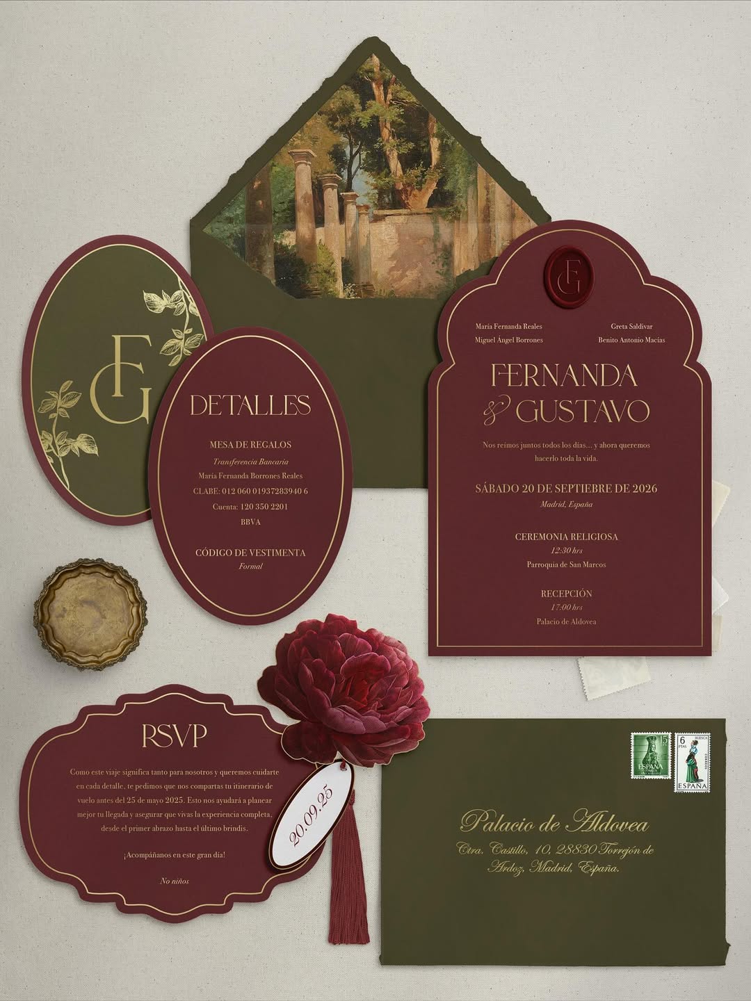 | Vintage-Inspired Charm | Cream, olive, deep burgundy, gold | Timeless rectangle, ornate borders | Letterpress, monograms, engraved illustrations | Heritage Elegance — nostalgic, rich, refined |