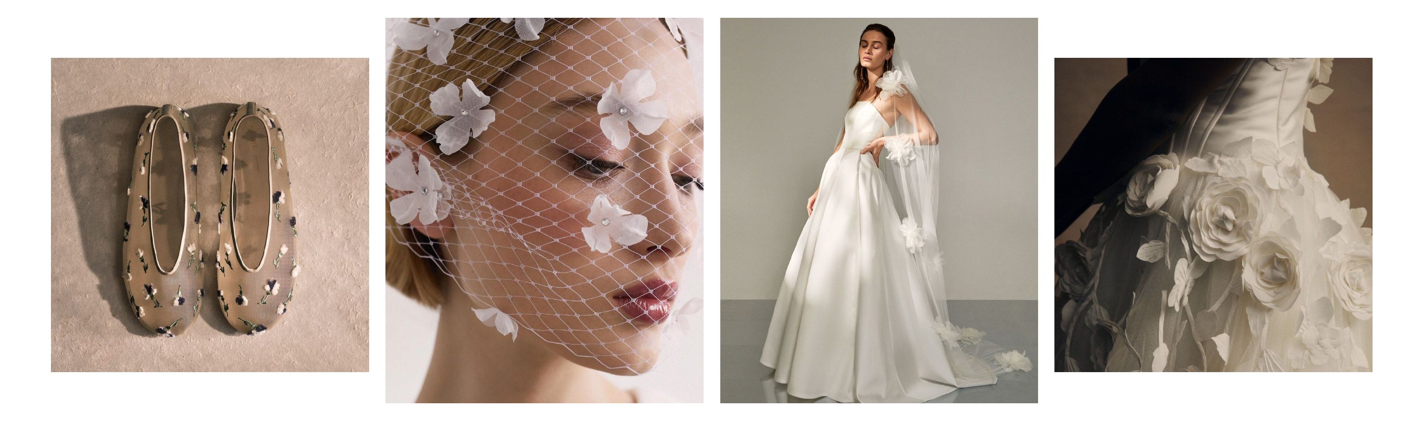 Subtle 3D lace appliqués, stitched blossoms, and hand-painted floral are favorites among modern brides. Designers are also increasingly using innovative materials and techniques to create stunning and realistic flowers, whether it's beautifully embroidered blooms or those made of delicate silk organza that seem to float on the dress.