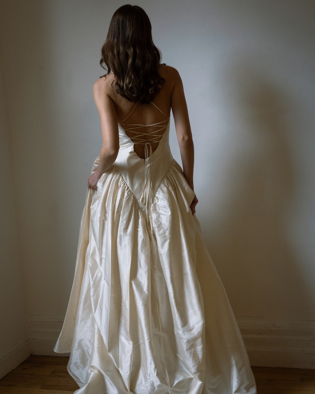 | High-Low Volume | Petite, hourglass | Destination & playful celebrations | Front leg shots, back train shots |
