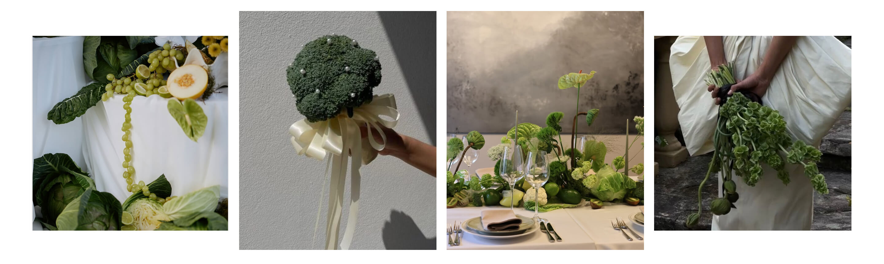 Who says bouquets must be all roses and peonies? Fruits and vegetables can turn a traditional bridal accessory into something bold, fashion-forward, and completely unforgettable. These unexpected elements transform bouquets into conversation pieces that not only complement your outfit but also stand out in photos with an editorial, avant-garde feel.