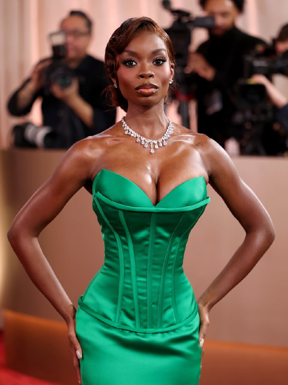 Olandria Carthen arrived in emerald green Christian Siriano with diamond jewelry, making the case that jewel tones are severely underused on red carpets.