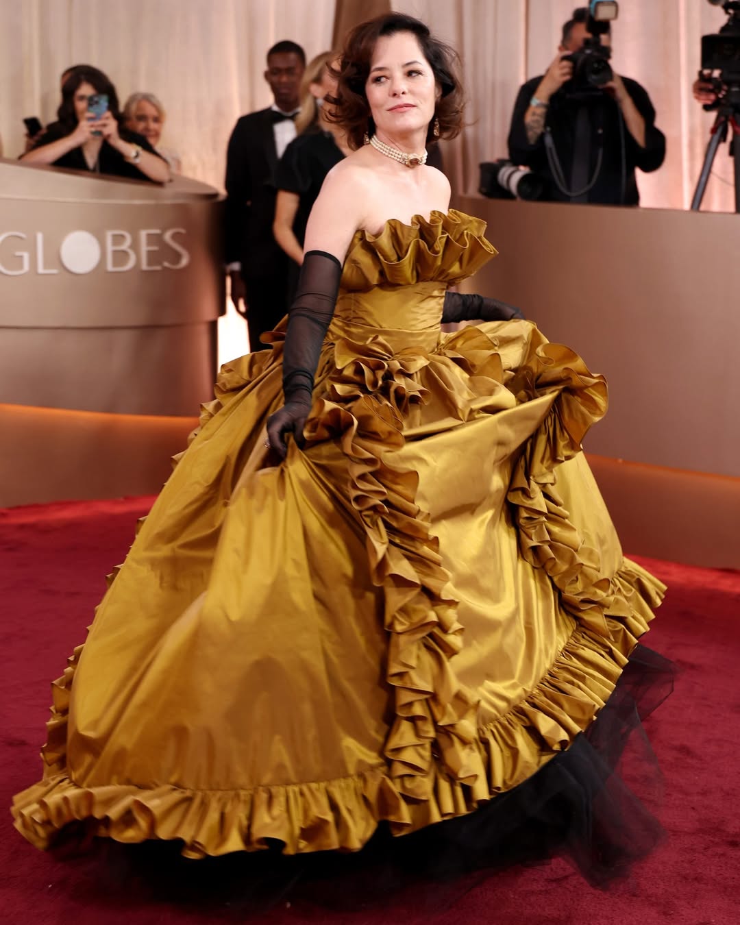Parker Posey mixed Rodarte with Atelier Biser gloves, Sabyasaschi jewelry, and Manolo Blahnik shoes in a way that somehow all made sense together.