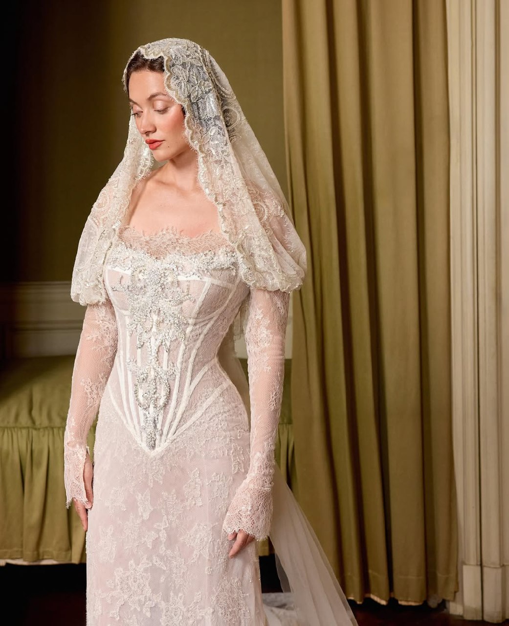 Modern designers aren't just inspired by guipure – they're deeply fascinated by its rich history. The antique guipure lace wedding dress aesthetic is inspired by Victorian and Edwardian times, when lace-making was an art form that skilled artisans would spend months, sometimes years, perfecting. The hand-stitched details gave them a charm that can't be replicated by machines, and the patina and subtle imperfections added character instead of detracting from their value. These pieces took us back to a time when clothes were made more slowly and thoughtfully, with flowers and plants being used as patterns. Today's bridal designers are recreating that feeling, but not by copying vintage gowns. Instead, they borrow their ethos and translate it into modern silhouettes. Imagine heirloom quality without the dust and romance without the restraint. The best thing about it is that it serves as a bridge between the past and the present. Modern brides can wear something that feels truly traditional, yet still has a modern vibe.