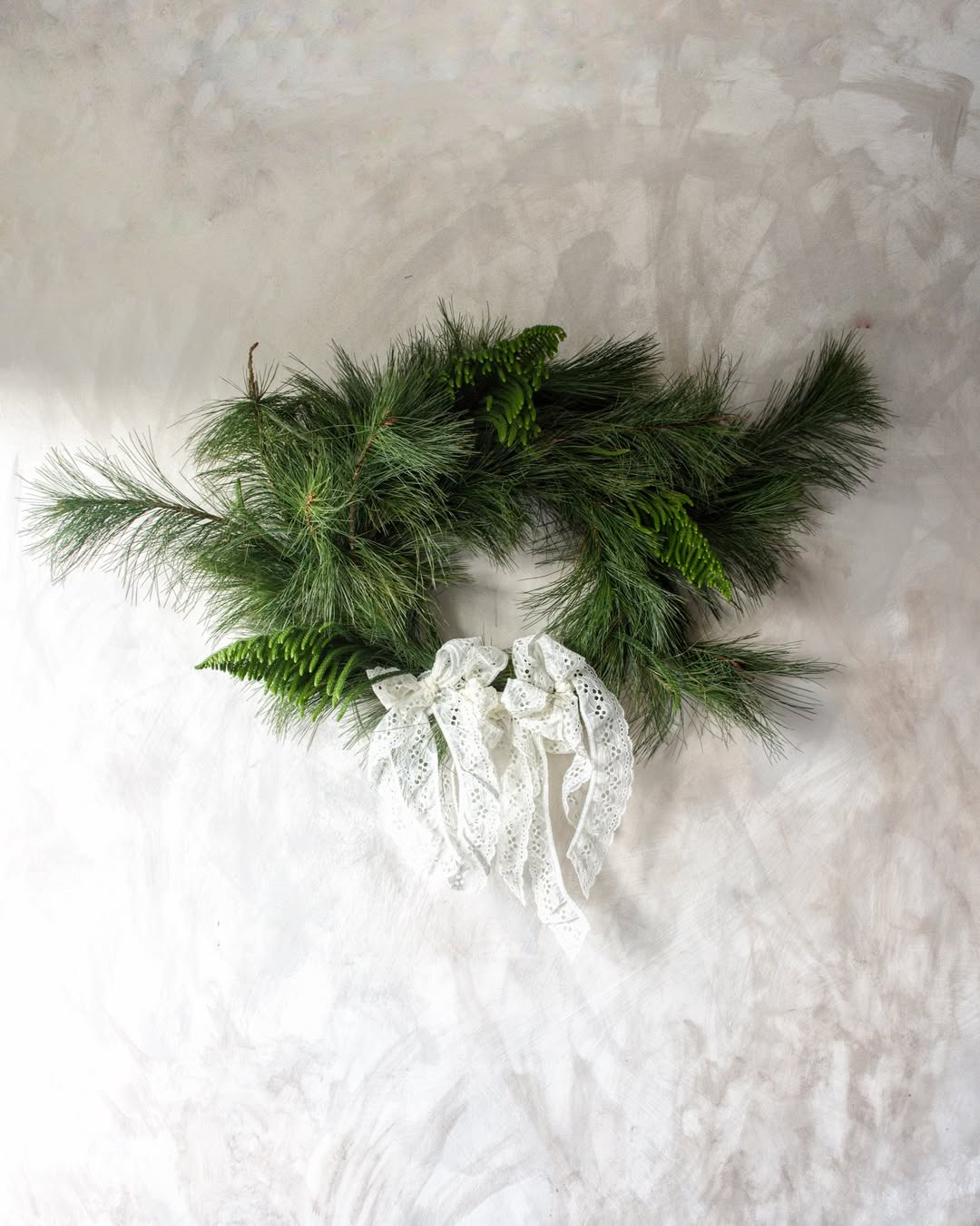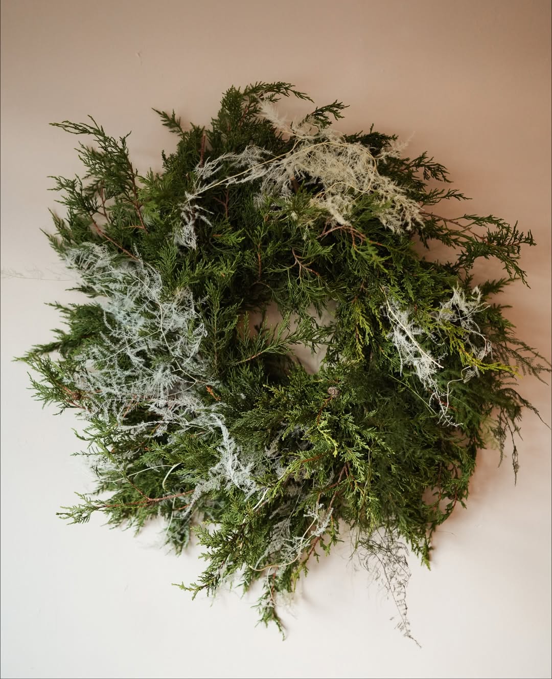 - Evergreen branches add rich texture and shape to wedding wreaths, making them look full and naturally arranged.