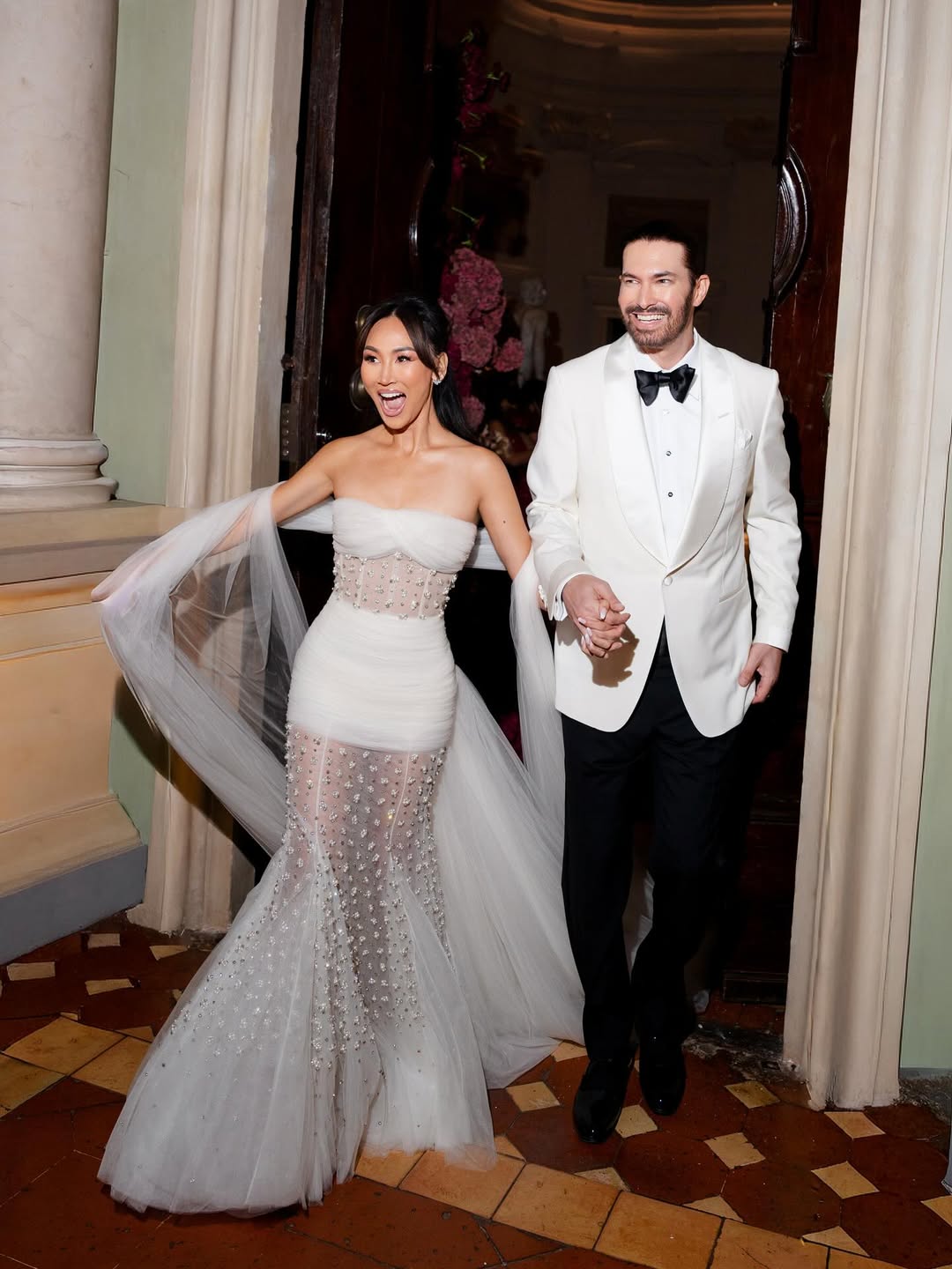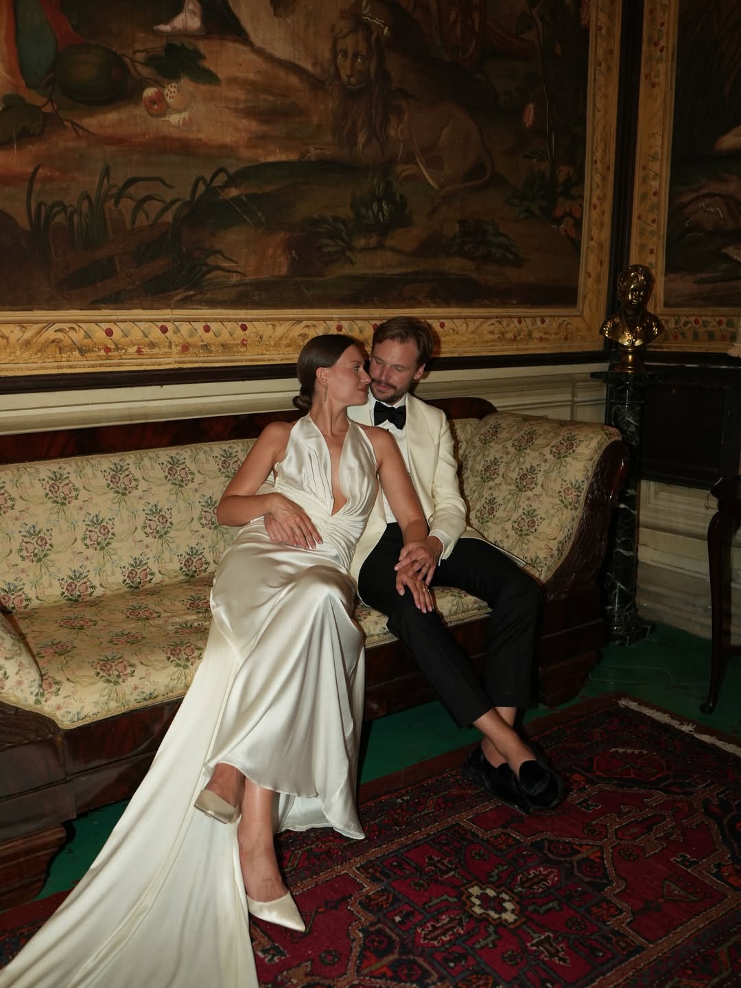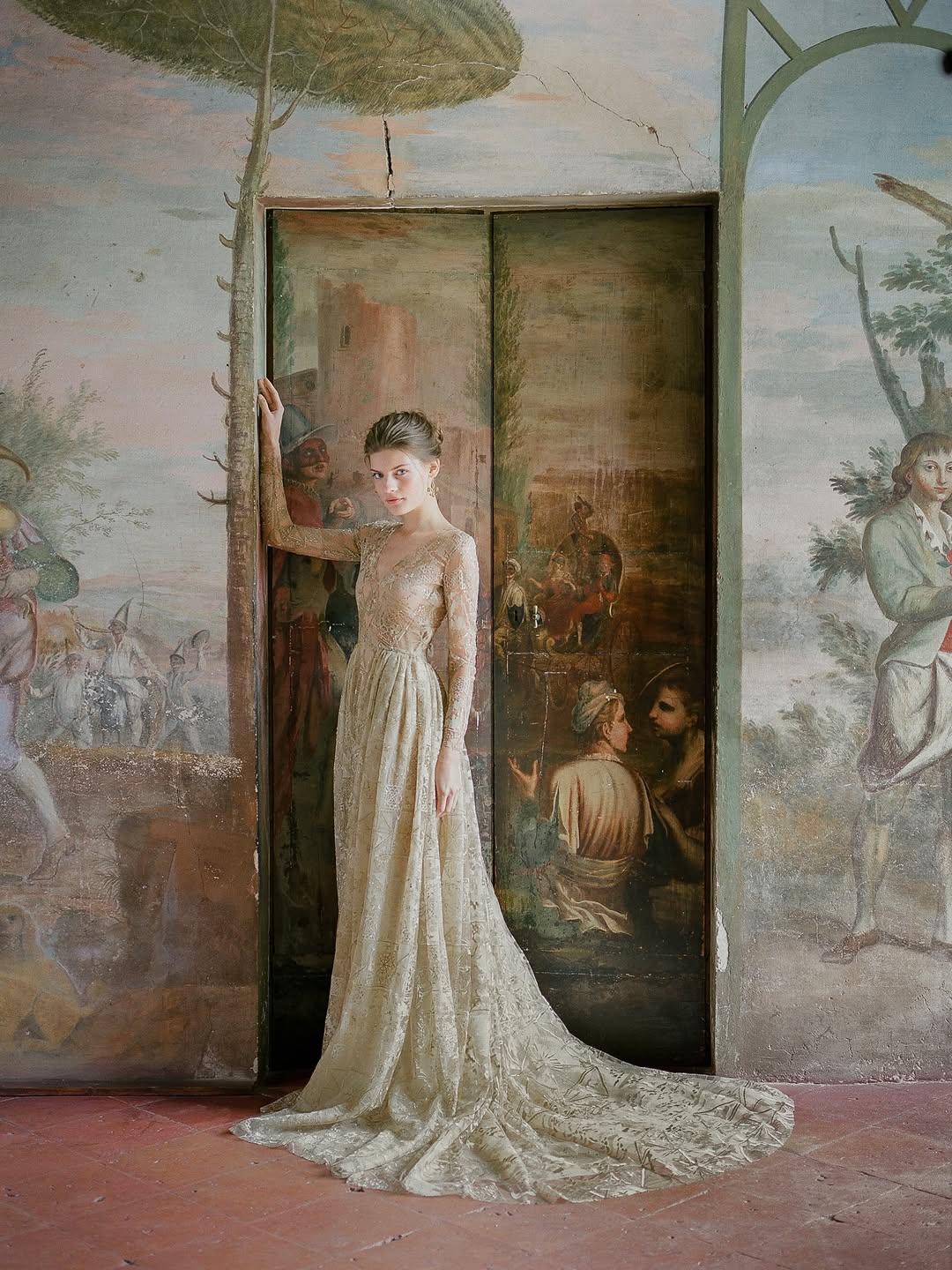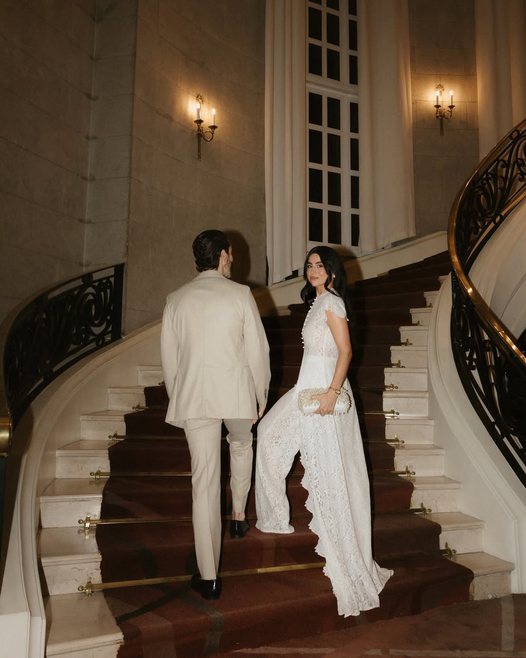 Symmetry is especially effective in indoor wedding photoshoots. A centered composition, a couple perfectly positioned within a doorway, standing on the axis of a symmetrical hallway, creates a formal elegance difficult to achieve outdoors. The limited space allows for precise positioning of subjects: they can be placed where architectural lines converge, where the light falls most effectively, and where the geometry of the space serves rather than contradicts the image.