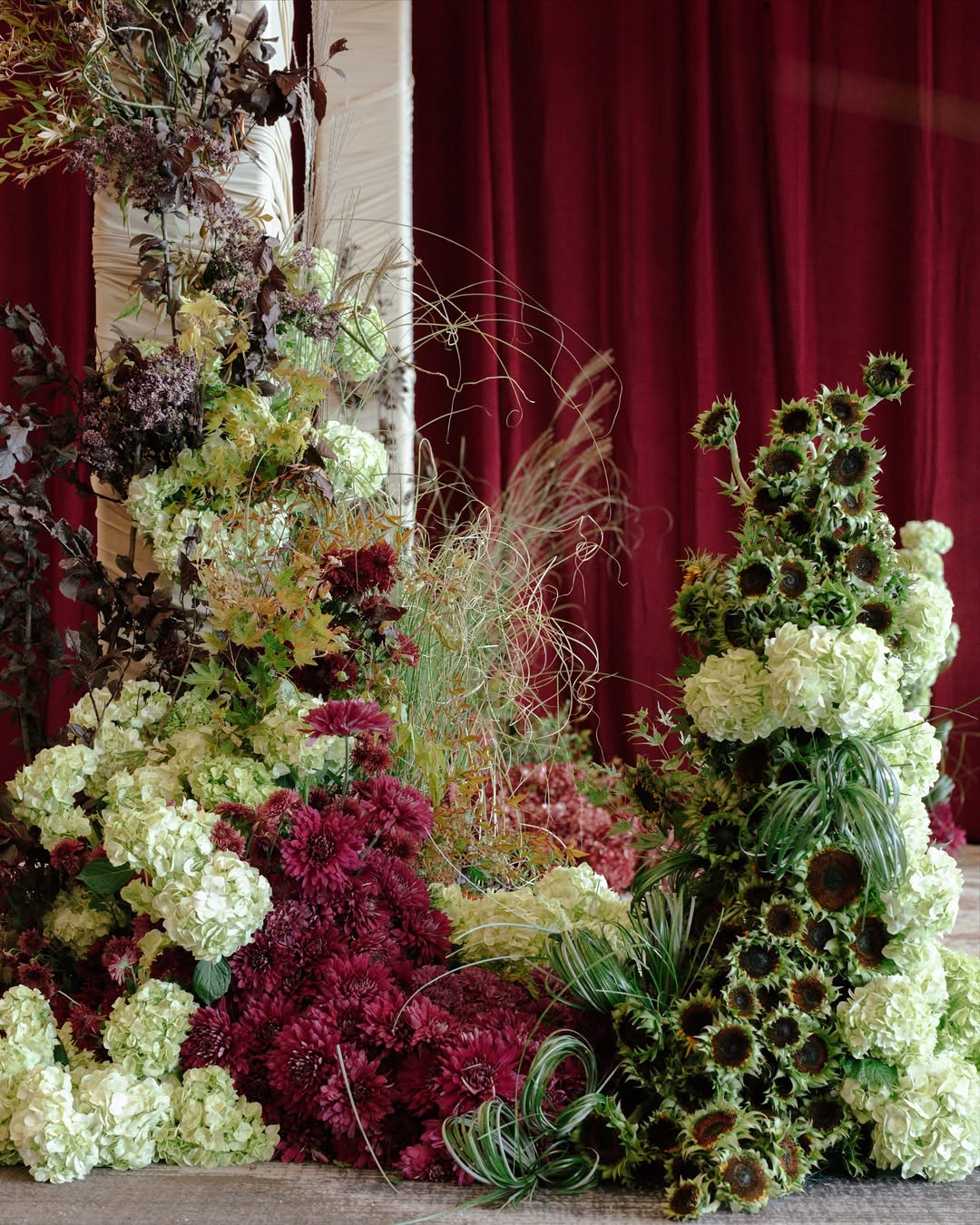 | High-Contrast Organic | Burgundy + ivory, dark leaves + light petals | Bold, editorial-style events |