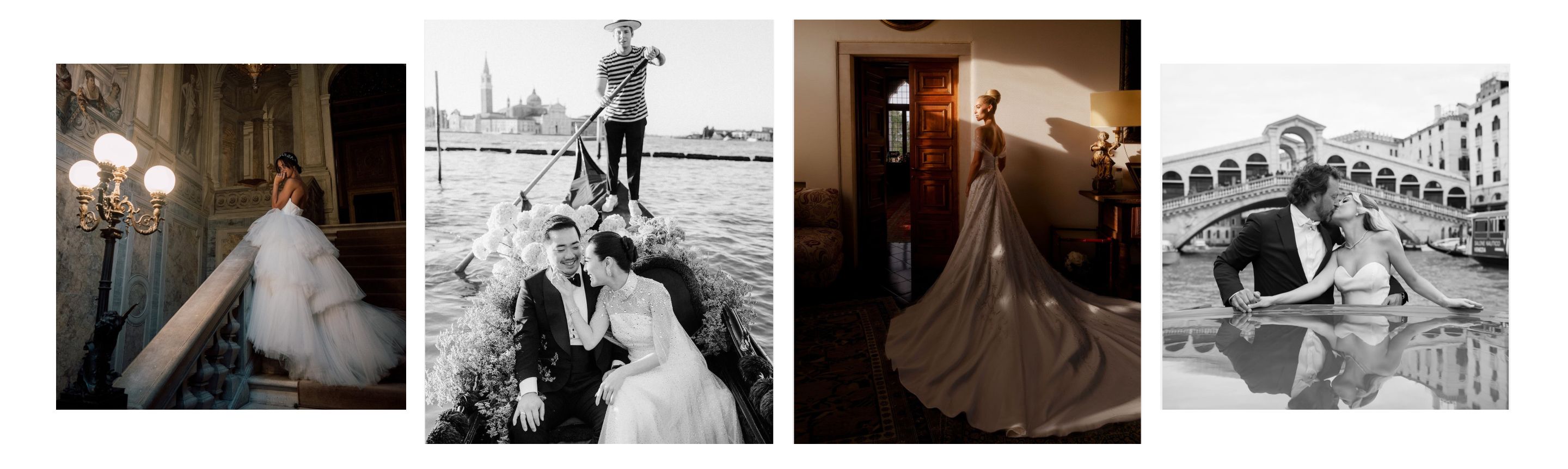 Moreover, Venice's rich cultural heritage and iconic landmarks offer endless possibilities for your wedding photoshoot. Locations such as Piazza San Marco, with its majestic St. Mark’s Basilica and the towering Campanile, provide a grand and historic setting. The luxurious interiors of hotels like The Gritti Palace and Aman Venice add a touch of opulence and sophistication. Even the quieter, lesser-known areas like Torcello Island or the lush gardens of San Clemente Palace Kempinski offer serene and intimate scenes that are perfect for capturing personal moments. These diverse and picturesque locations ensure that your wedding photos reflect the essence of Venice—romantic, historic, and undeniably beautiful. By choosing Venice, you are not just selecting a backdrop; you are embracing a city that will make your wedding memories as magical and enduring as the city itself.