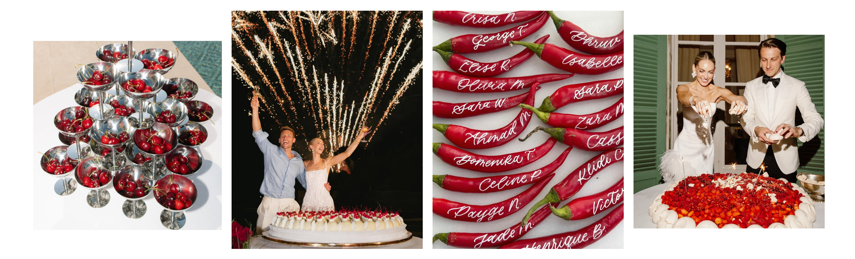 Personalisation at weddings used to mean things like engraved jewellery boxes or custom paper goods. Now, it’s moved to something even more direct: the food and drinks guests enjoy as soon as they arrive. Welcome drinks with guests’ names in edible flowers, starter plates with initials, and mini cheese boards marked with food preferences aren’t just extra touches anymore. They’re how couples start a conversation with their guests.