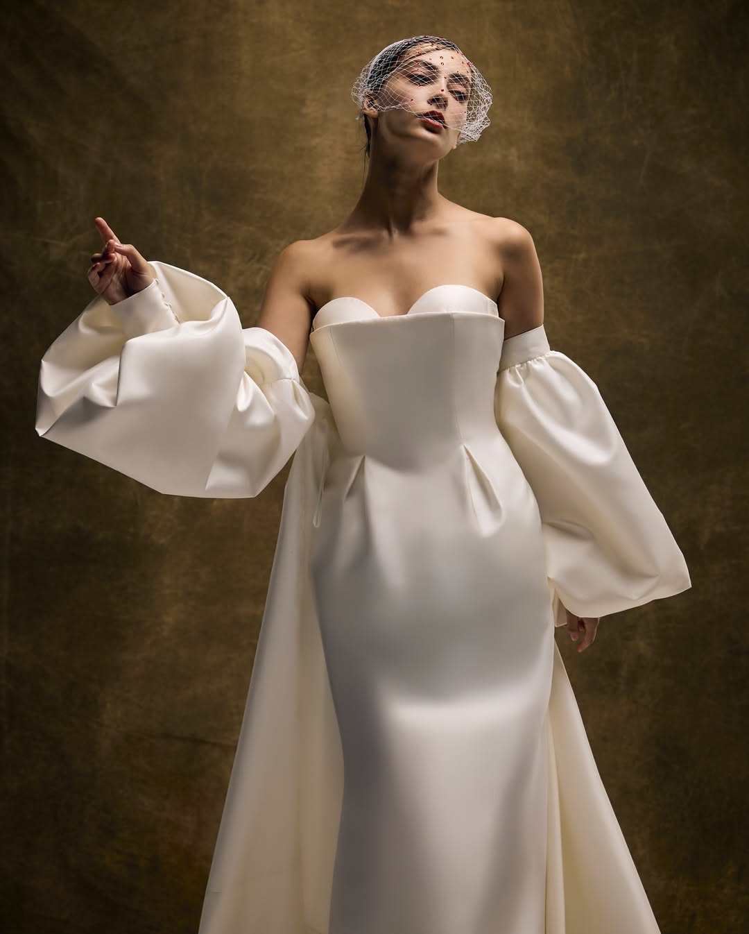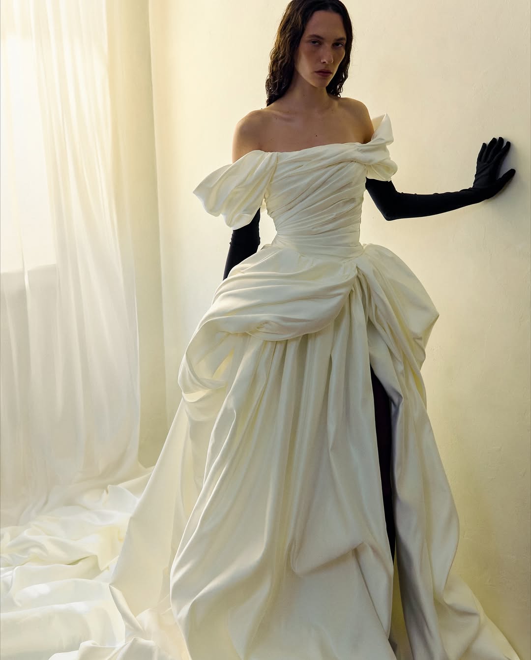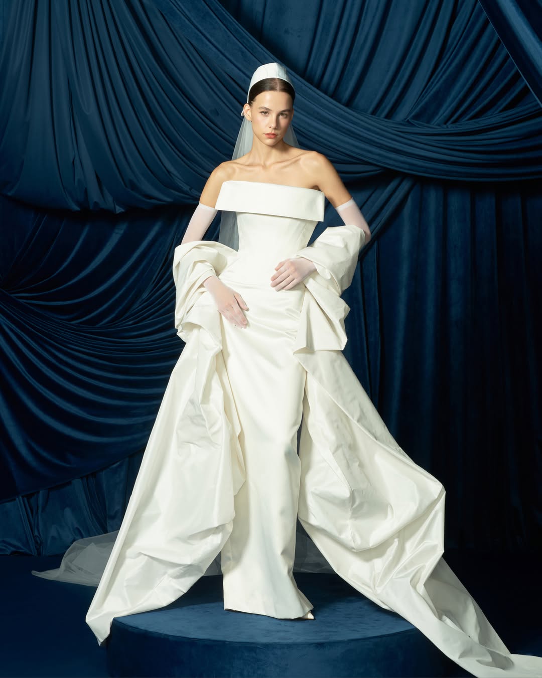 For brides who care about how their dress will look in photographs, this trend delivers. The strong silhouettes are clearly defined in photos, creating memorable shapes that don't rely on perfect lighting or angles to look striking. Whether captured in a grand ballroom or a minimalist gallery space, these gowns make an impact, proving that the most effective bridal statement is sometimes written in form, volume, and architectural intent.