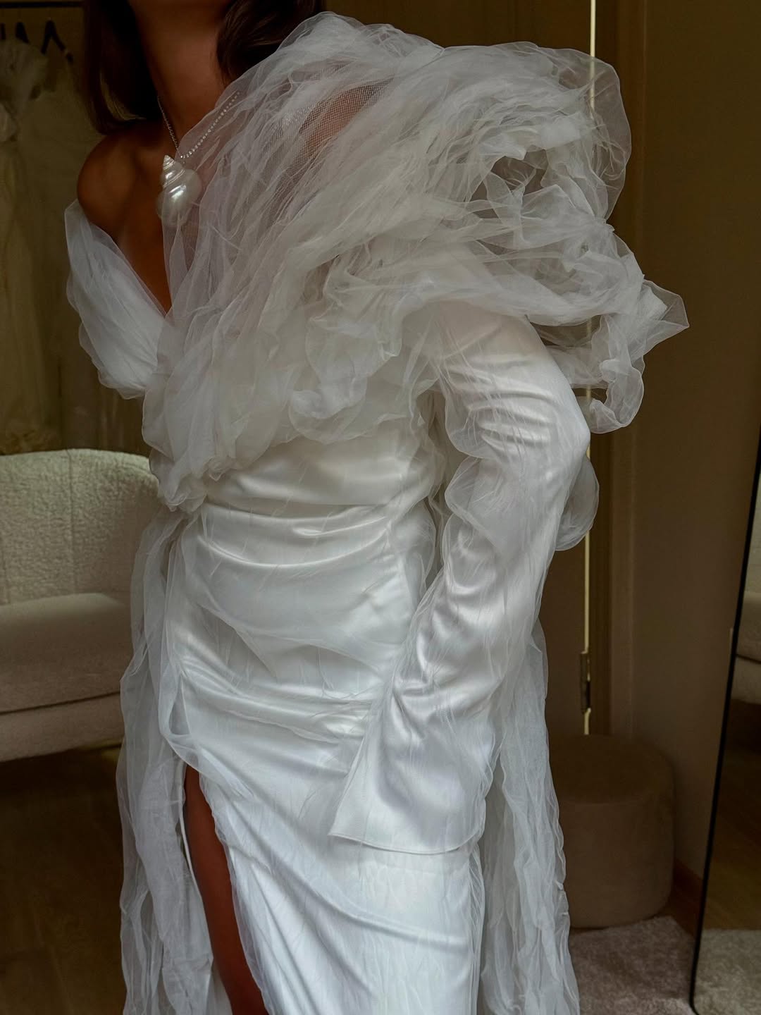 - Asymmetric contours break the symmetry that bridal has relied on for centuries. One shoulder bare, the other draped. A hemline that dips and rises. A neckline that wraps diagonally across the chest. Sculpted wedding dressesutilize asymmetry not as a detail, but as a foundational design principle, creating movement and visual interest that traditional, balanced silhouettes simply can't match. It's unexpected, dynamic, and endlessly photogenic.