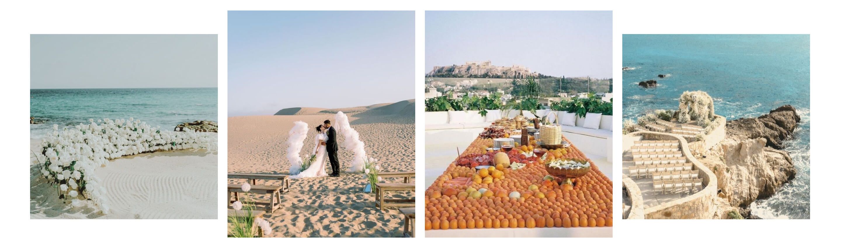 Nowhere combines beauty, soul, and history quite like Italy — and when you blend that with a boho spirit, you get something truly magical. Bohemian Italy is about long wooden tables set under olive trees, hand-painted ceramics, ripe lemons, and effortless fashion. Picture terracotta tones, macramé details, and linen napkins fluttering in the breeze. The food? Fresh pasta, local wine, and tiramisu served under the stars. This theme invites guests to slow down, savor every moment, and lose themselves in the sensual beauty of Italian culture. It's barefoot luxury meets la dolce vita — full of laughter, music, intimacy, and soul. Perfect for vineyards in Tuscany, seaside villages in Puglia, or cliffside celebrations in the Amalfi Coast.