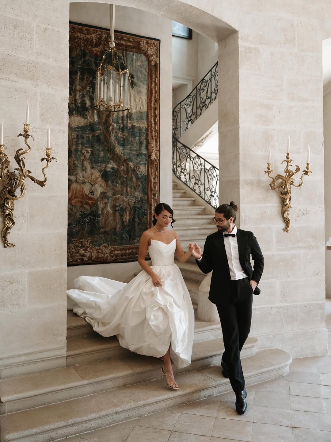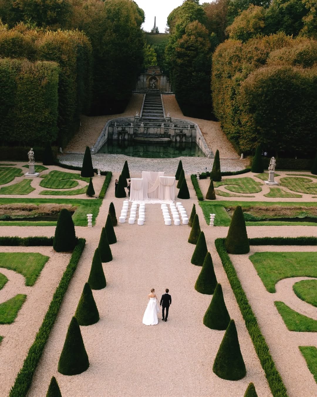 Vibe: Pure French elegance—“Le Petit Versailles” near Paris, where sweeping gardens, baroque architecture and gilded interiors set the stage for a wedding that feels couture yet completely yours.