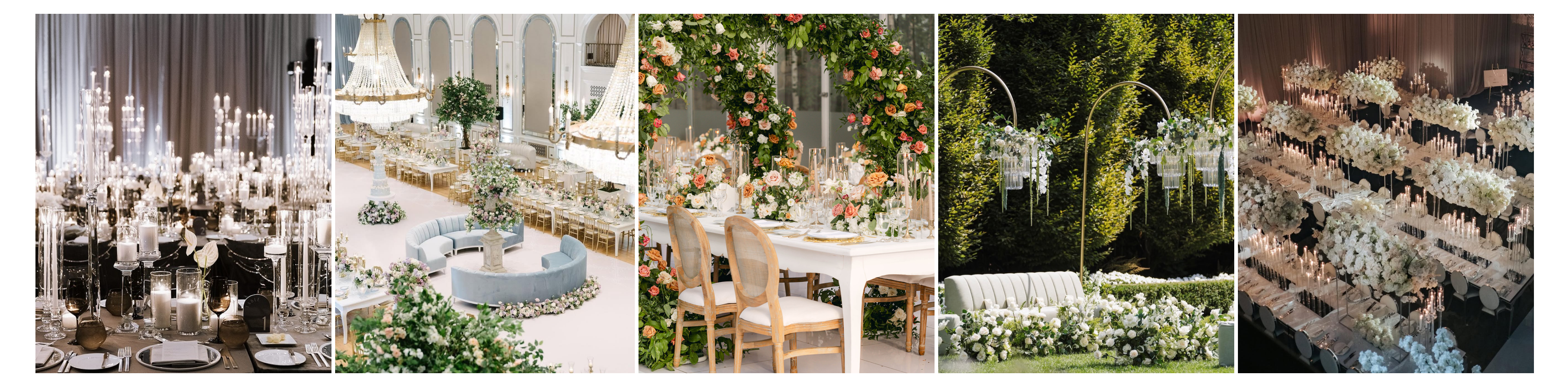 Their signature lies in seamlessly blending lush, artful floral arrangements with an extraordinary inventory of décor, curated over years of travel and experience. This vast collection – paired with their award-winning floral expertise – allows them to offer bespoke designs tailored to every couple’s vision, whether it’s timeless sophistication or modern luxury.
