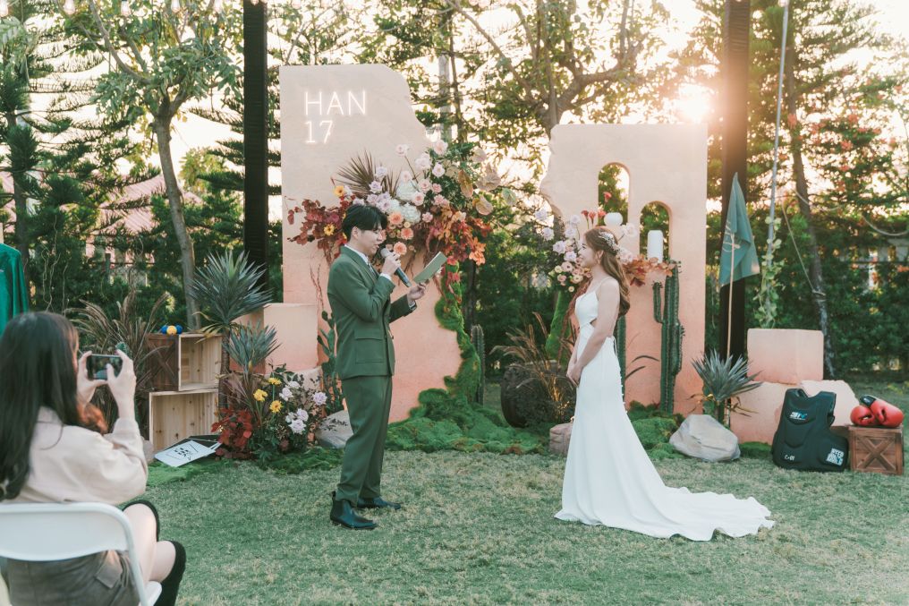 With 36 weddings a year and clients from around the world, Star’s process remains simple and thoughtful. Communication happens online, often through LINE, and the connection blossoms naturally on the wedding day itself. “Relax and enjoy your important day. Live your life to the fullest,” he advises his couples — a philosophy that mirrors the ease and authenticity of his art.