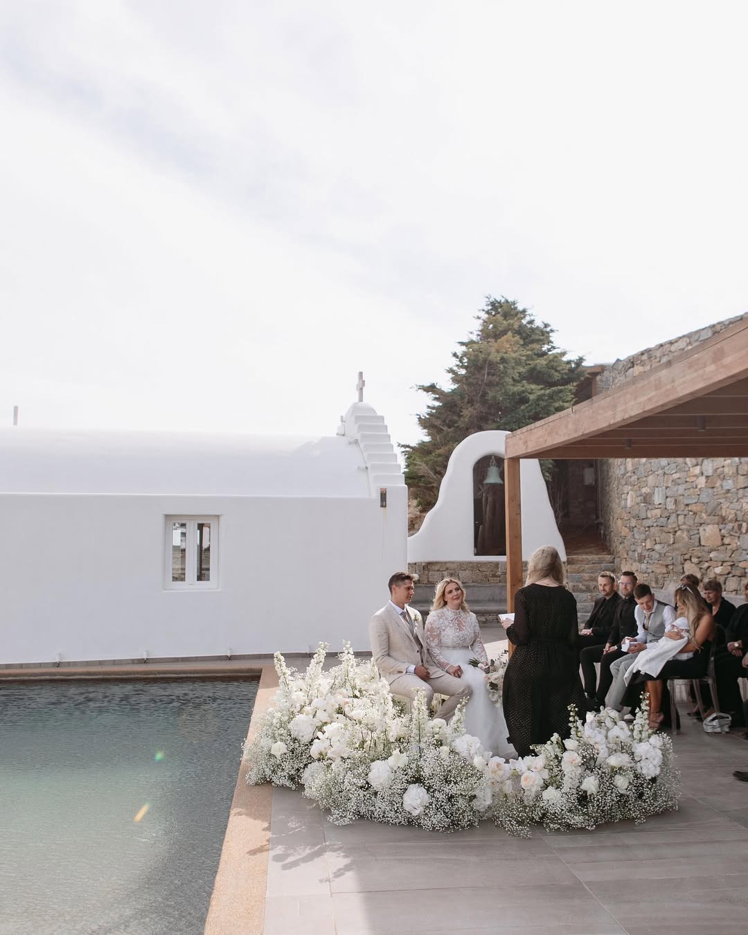 If you're a couple with a big group staying over a few days, the resort's size is actually a bonus. Guests can find their own rhythm — some go to the spa, others grab a lounger on the beach, and everyone meets up for planned stuff without the forced togetherness that smaller places sometimes create. Your welcome dinner, ceremony, and farewell brunch can all be in different places, each with its own vibe, making the celebration feel less like one big event and more like a proper experience. Santa Marina is one of the best wedding venues in Mykonos for couples who want a place for a big celebration that still feels stylish. It takes care of all the details so well that guests only notice how special everything feels, not the work that goes on behind the scenes.
