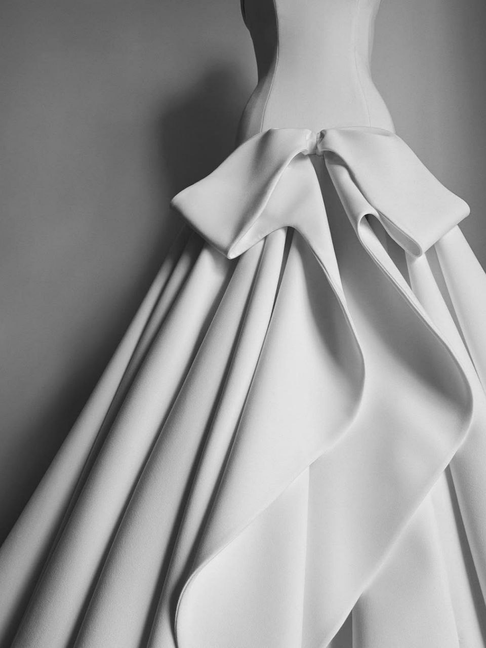 Yes, we're talking about the same material in wetsuits, but hear us out. Wedding neoprene has been refined into something completely different – smooth, structured, and surprisingly elegant. You'll be amazed at how this technical fabric creates clean lines and holds its shape throughout your entire celebration.