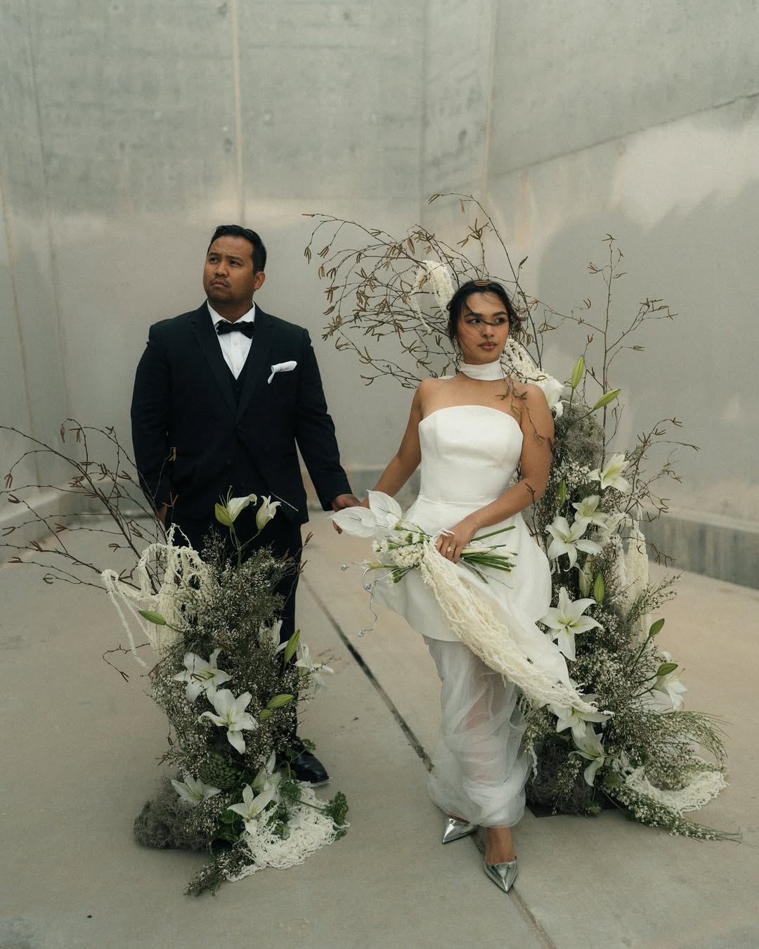 This shift toward imperfection is manifesting in unexpected ways. Couples are trading traditional floral arrangements for decomposed bouquets and creative presentations. The classic round bridal bouquet is being replaced with purse florals and avant-garde installations that feel more like wearable art than traditional wedding accessories.