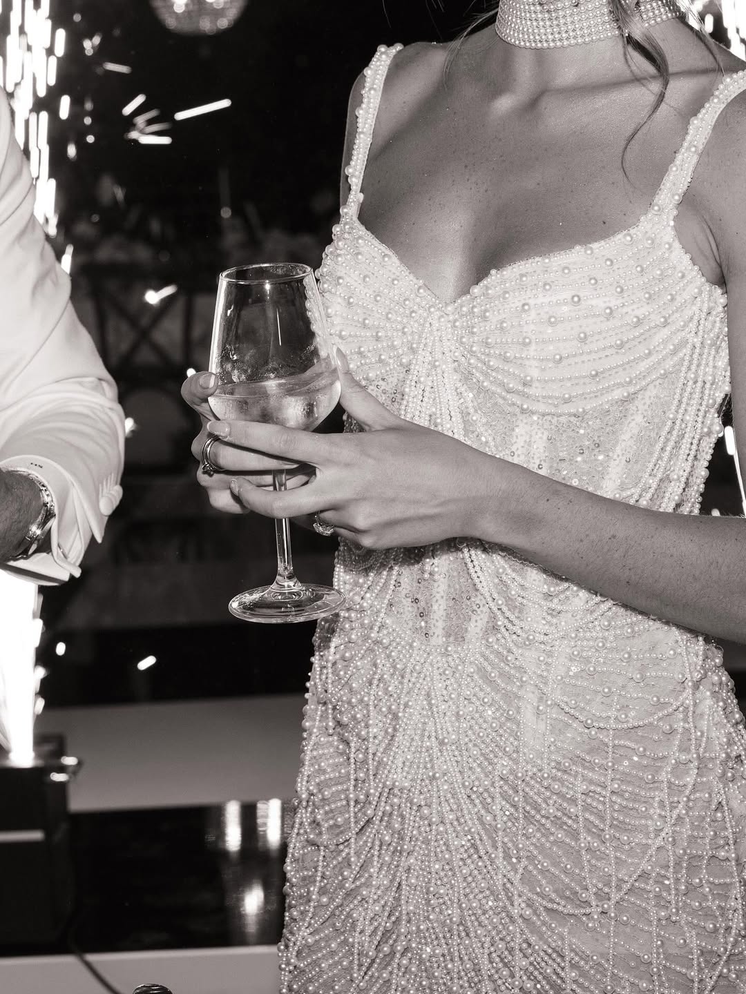 | Sequins & Pearls Mini | Short veil; Pearl-dust veil; Often no veil | Metallic heels; Crystal mules | Hollywood waves or high ponytail; Statement earrings; Sparkle clutch |