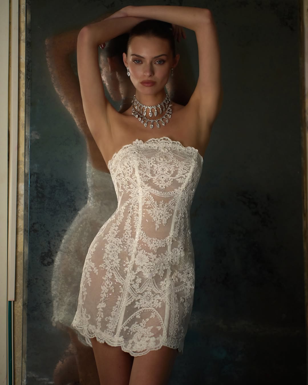 The resurgence of lace minis reflects a broader trend among brides who want to look "bridal" while embracing contemporary styles. The white lace mini bridal dress offers the perfect balance — the fabric and colour signal 'wedding', while the length signals modernity and personal style. It's tradition and innovation meeting at the knee to create something that feels both familiar and fresh. These dresses are ideal for intimate ceremonies, garden weddings, destination celebrations, and any other occasion where romantic femininity is essential but formality isn't.