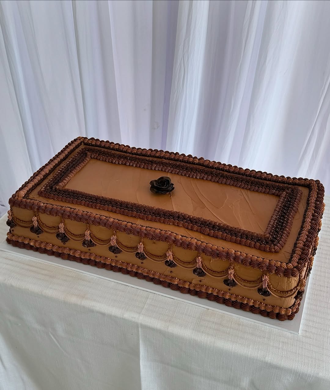 - Keep decorations linear (piped bands, beveled edges).