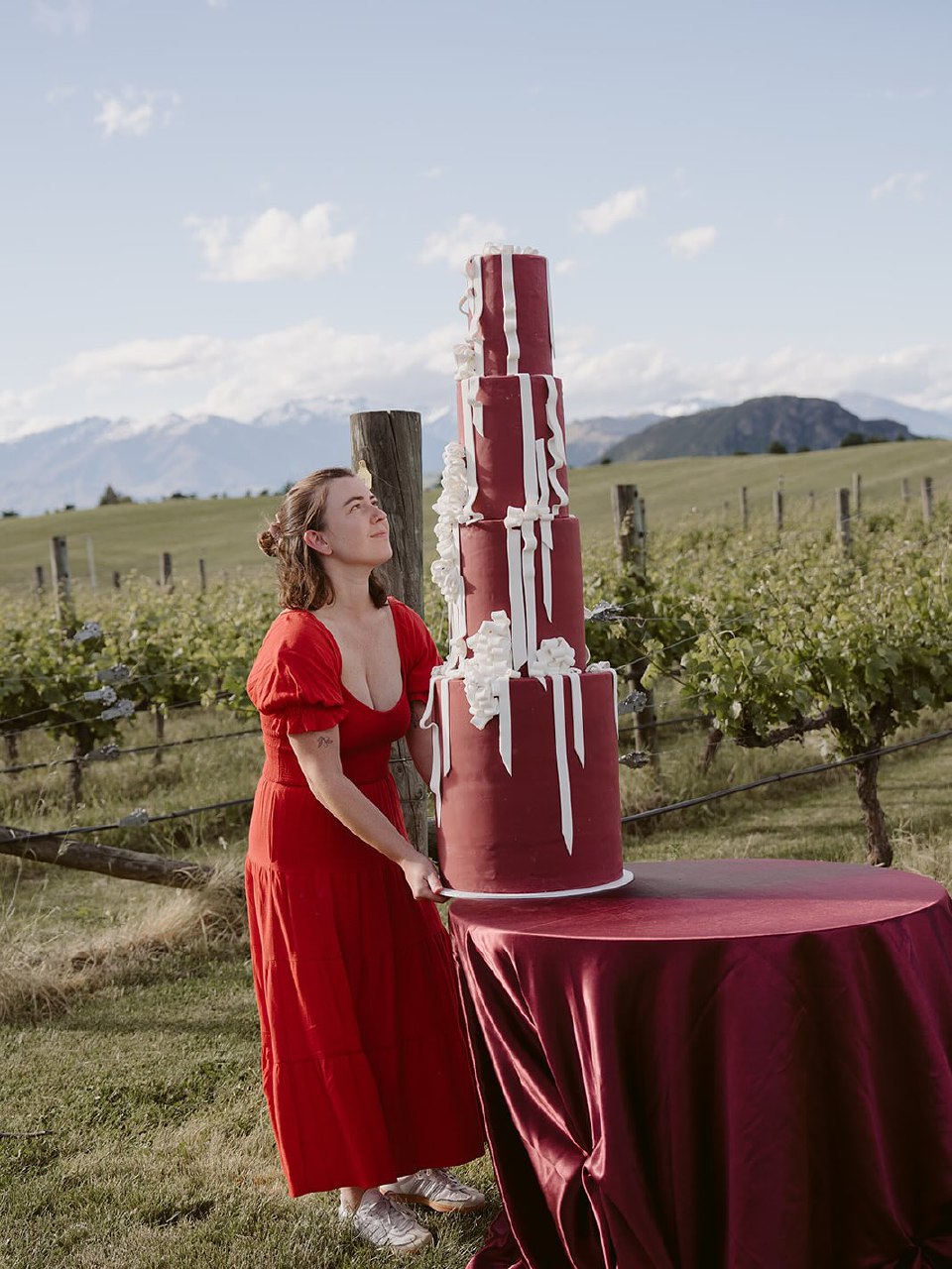 Pro move: place your cake against a pale background so the red reads crisp and editorial.