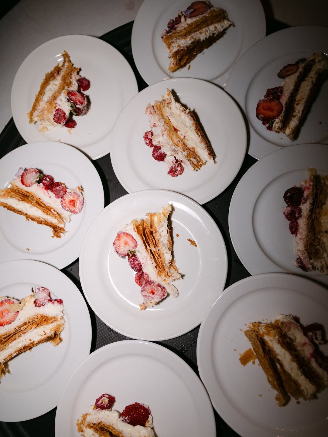Flavor musings: brown-butter vanilla with honey cremeux; earl grey sponge with lemon marmalade; almond cake with apricot jam.