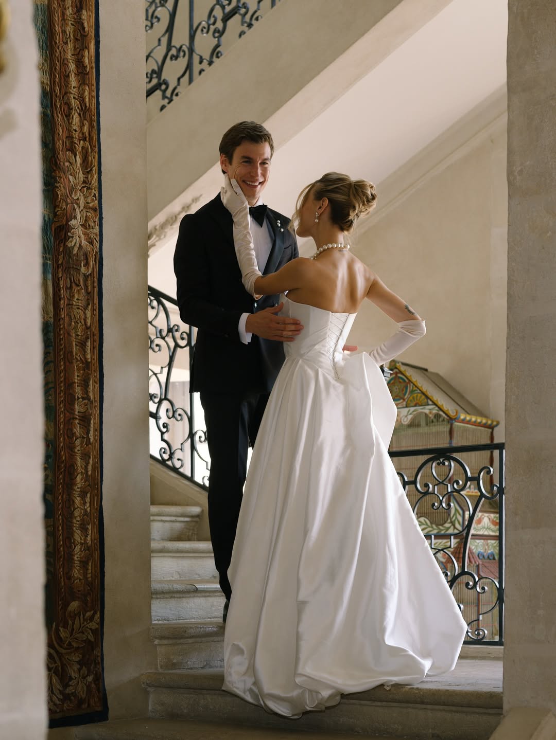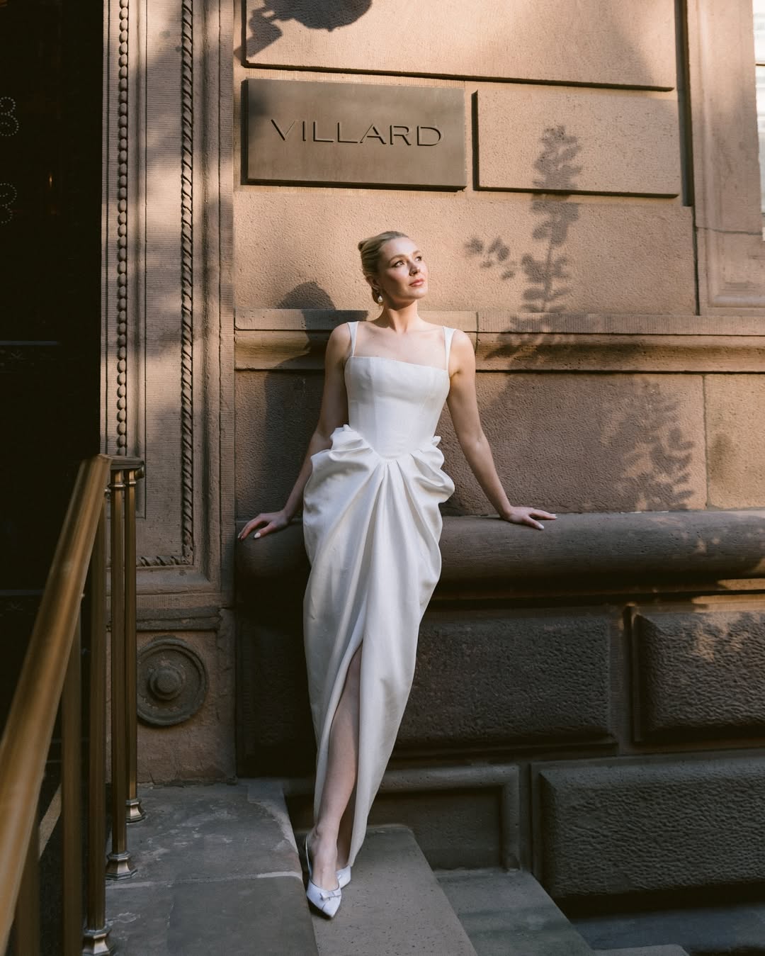 The key is in the proportions. Unlike a ball gown, which flares out dramatically, a classic tulip dress keeps its shape and looks more subtle. The skirt curves inward at the bottom, forming the flower-bud shape that inspired its name. This design creates a balanced, harmonious line that makes the figure appear longer, while adding just enough volume to feel special and bridal.