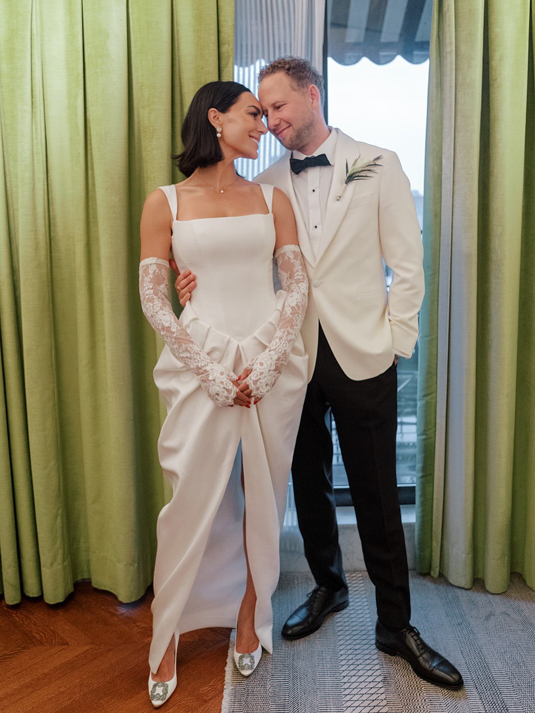 The tulip silhouette dress is a little different from classic bridal styles, so there are a few things to keep in mind when choosing how to wear it. Its special shape offers fun ways to style your look. Since the dress stands out on its own, your accessories should complement it rather than compete, so everything looks balanced and put together.