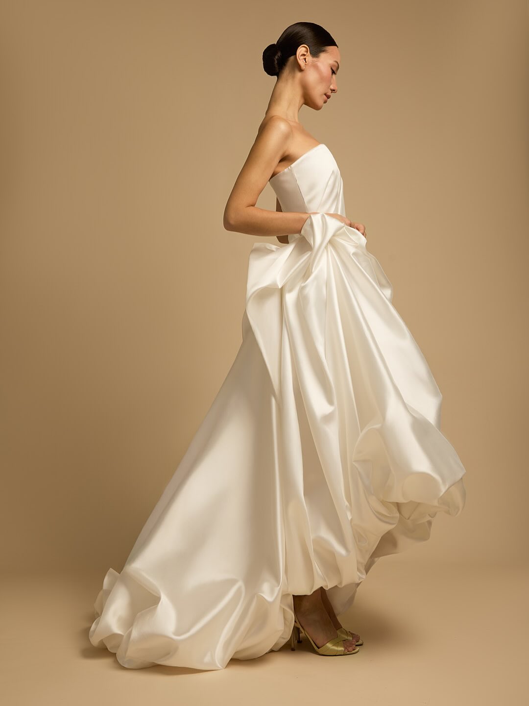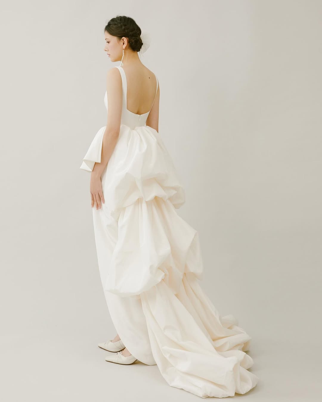 The classic tulip shape is known for its curves, but this modern tulip dress extends the silhouette, creating a smoother, more stylish look. These tulip gowns are for the minimalist bride who wants to stand out without being too flashy.