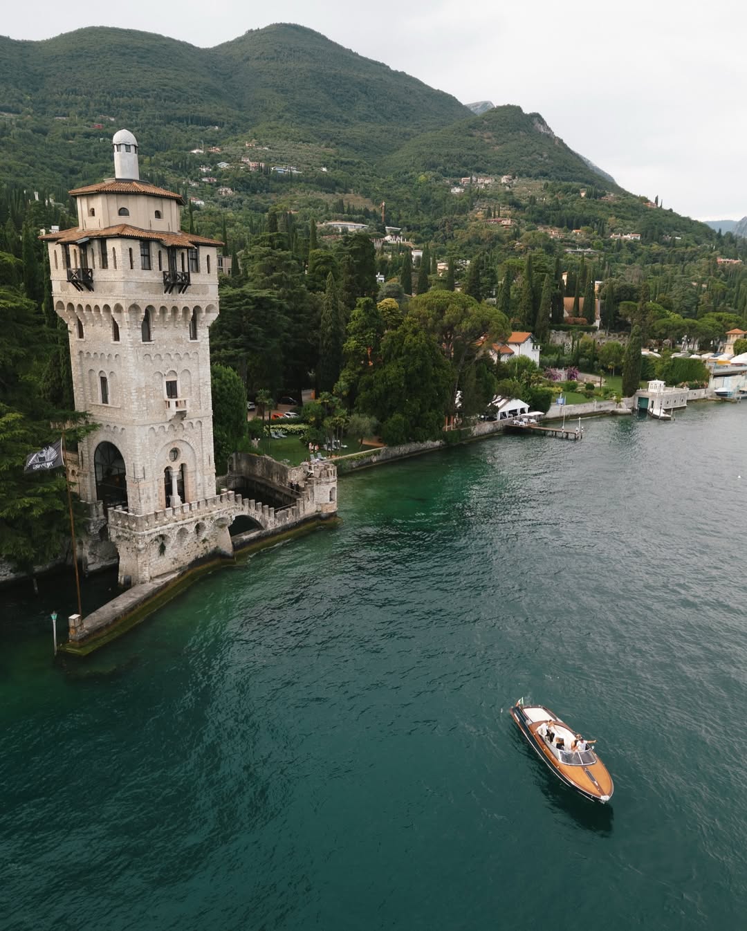 Gargnano, Gardone Riviera, and Salò make up the most refined and exclusive part of Lake Garda. The western shore features grand villas from the late 1800s and early 1900s, which helped define Italian lake luxury. Lush Mediterranean plants, such as palm trees, agave, and bougainvillea, add a gentle, elegant contrast to the Alpine scenery across the lake.