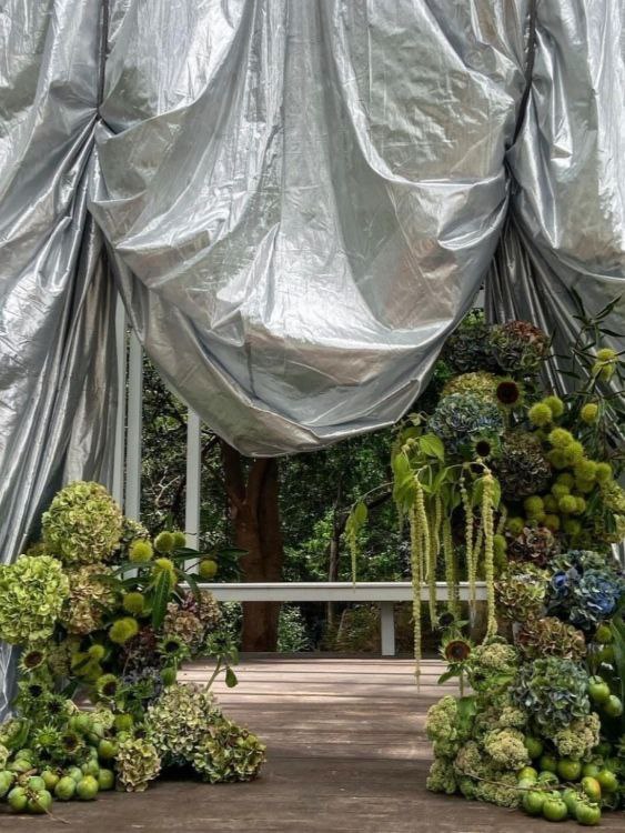 A bold and striking choice, metallic tones paired with green create a glamorous yet natural vibe. Gold, silver, or copper accents elevate the lush greenery, adding sparkle and elegance without overpowering the organic feel. Imagine golden candlesticks surrounded by cascading ivy or a silver arch decorated with emerald leaves. This is the perfect combination for couples looking for modern wedding ceremony inspiration, since it blends trend-forward shine with timeless nature. Metallics offer a versatile base that can adapt to formal black-tie affairs or more relaxed celebrations with a touch of glamour. It’s an ideal palette for those who want their wedding to feel like a balance of nature and luxury.