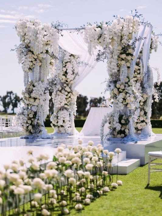 Minimalist yet timeless, white and green is one of the most loved palettes in weddings worldwide. The pairing of fresh greenery with the purity of white flowers creates an atmosphere of serenity and luxury. Couples often opt for this design to bring the outdoors inside, crafting a natural and effortlessly chic celebration. Whether used in lush table runners of eucalyptus or towering floral arrangements of hydrangeas, this palette fits both rustic barns and luxury ballrooms. It’s a go-to option for creative wedding ceremony ideas, offering endless variations without ever feeling repetitive. In fact, many couples find white and green to be the ultimate expression of balance, making it one of the most enduring unique wedding ceremony themes.