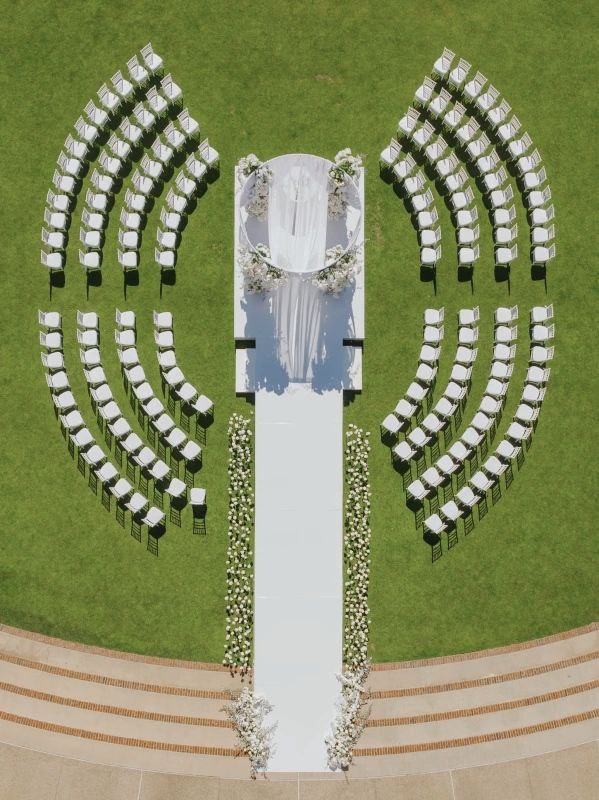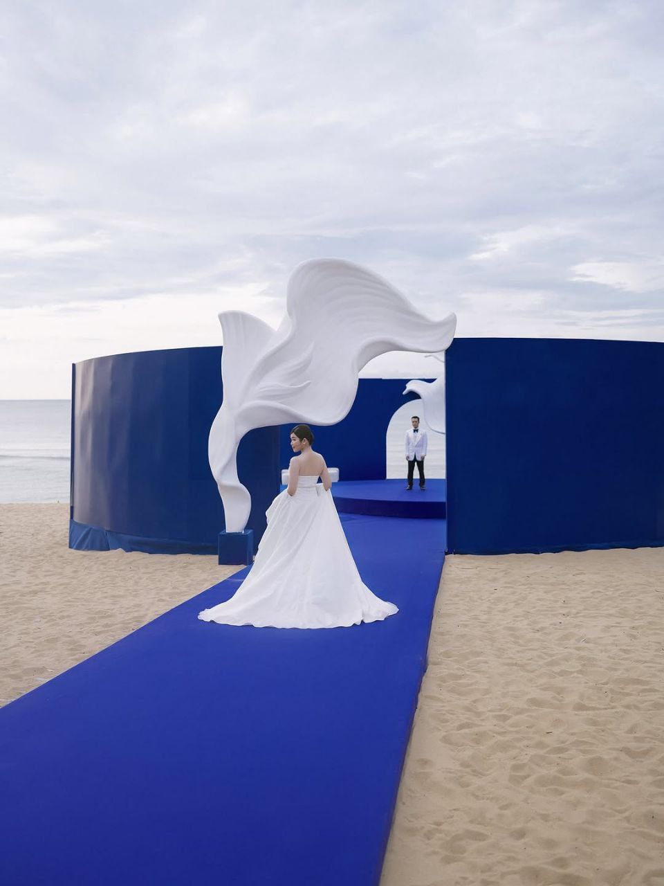 Crisp, cool, and endlessly stylish, blue and white is a palette that resonates with calm sophistication. Often chosen for seaside weddings, this combination reflects the ocean and sky, making it perfect for coastal ceremonies. Navy suits paired with white gowns, hydrangea bouquets, or delicate porcelain-inspired patterns instantly transport guests to a world of elegance. For couples seeking vibrant wedding ceremonies with a serene and polished tone, this palette is ideal. Blue and white also lend themselves beautifully to destination weddings, where the colors harmonize with the surrounding landscapes. It’s a refined choice that allows couples to create unique wedding ceremony themes inspired by the sea, tradition, or modern artistry.