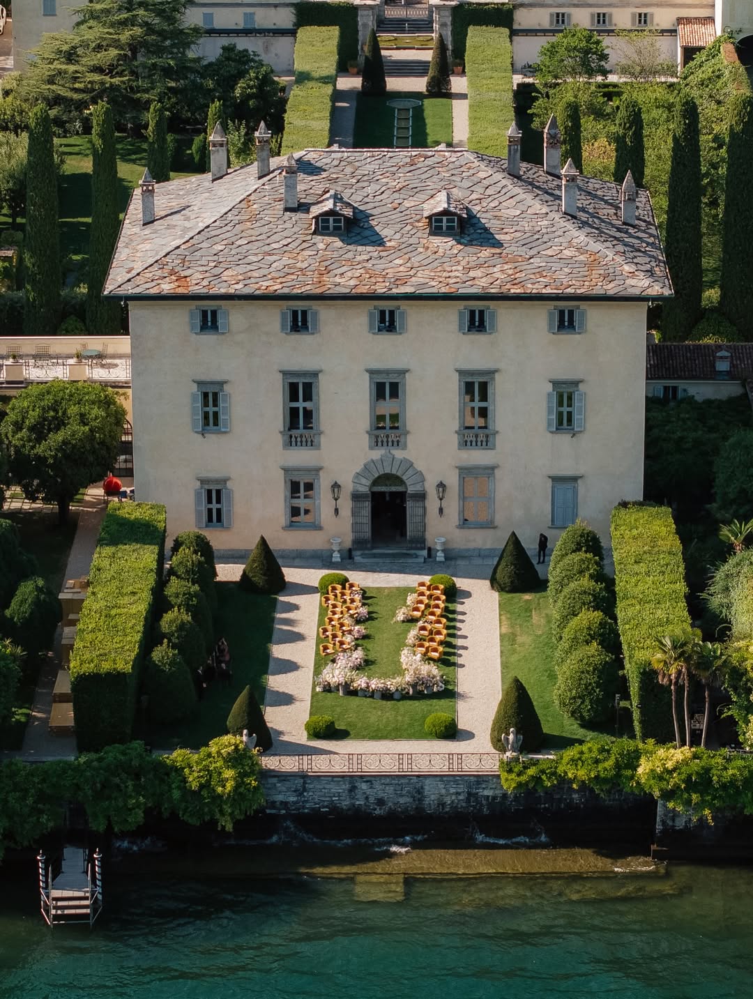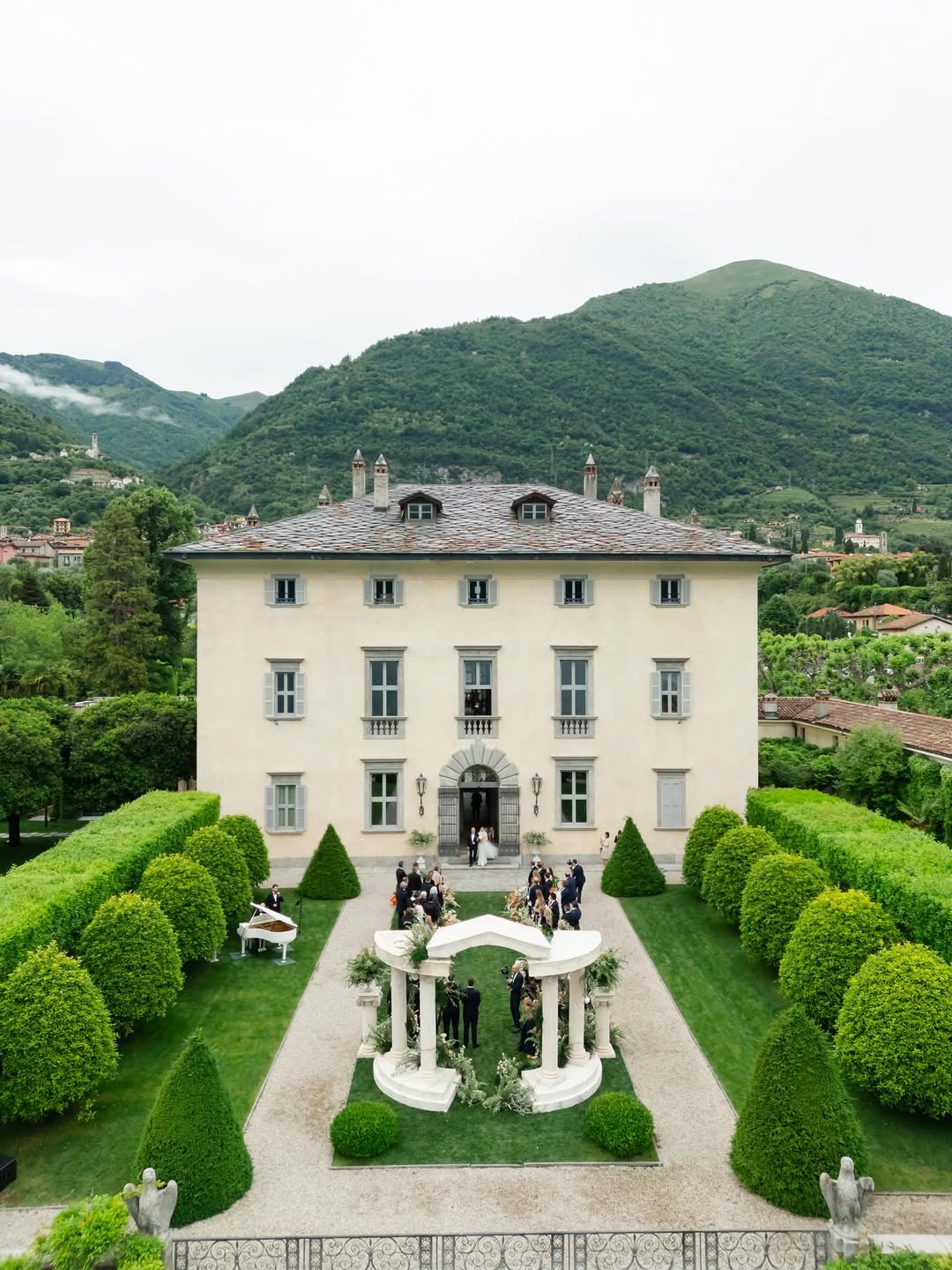 This place might be the most cinematic of all, with dramatic loggias, sculpted gardens, and a feeling that every step could be captured on film. It stands out among villa wedding venues. Few locations abroad offer this kind of visual poetry. Terraced gardens lead down to the lake, loggia arches set a dramatic stage for ceremonies, and stone paths wind through azalea groves like natural runways. Star Wars and James Bond were both filmed here for a reason. It looks stunning in photos, feels like a story unfolding, and turns weddings into something worthy of a magazine spread.