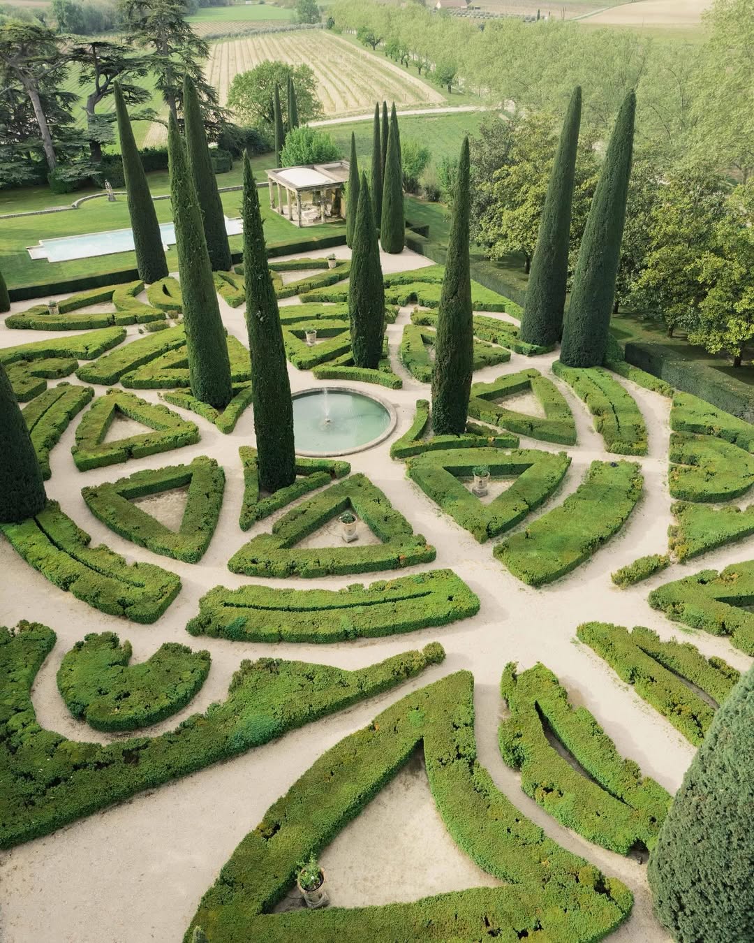 The path you follow on your journey is lined with magnolias and leads to the château's formal French gardens. Enjoy a leisurely walk under the shade of the cypress trees, accompanied by the soothing melody of cicadas. Feel the coolness of pale gravel beneath your feet as you walk along the path. The sensation is both grounding and dreamlike, creating a unique blend of stability and ethereality.