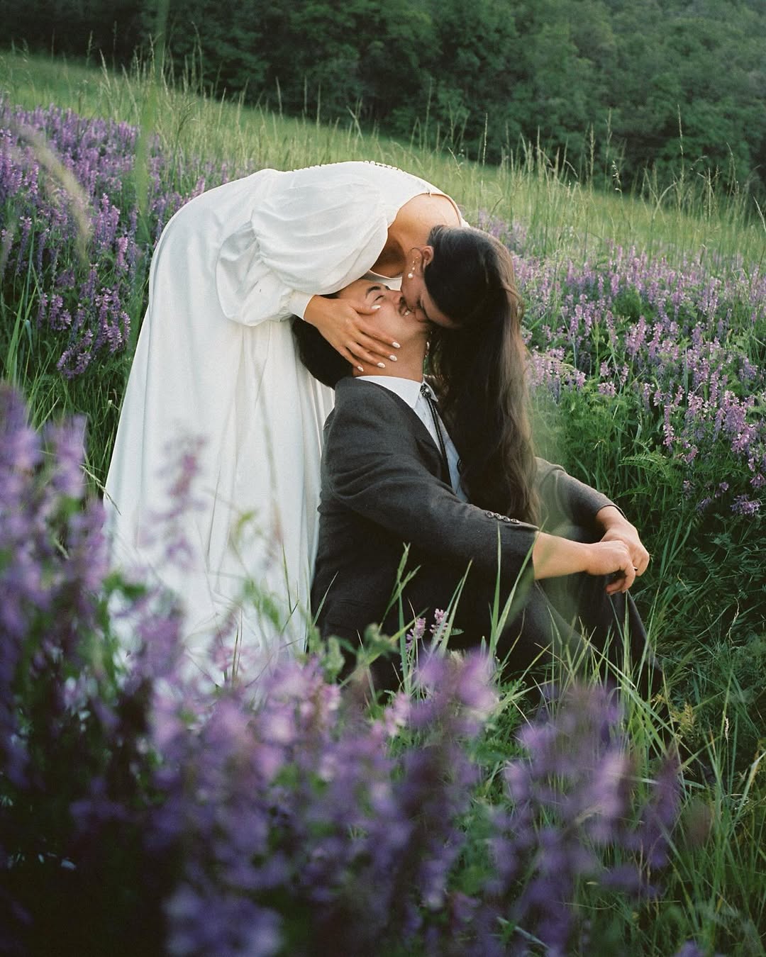 Outdoor wedding photos especially stand out with the film's dynamic range and natural color. Film captures golden hour light beautifully, softens skin tones, and gives wedding dress shadows a natural look. These images feel cinematic, not just like standard event photos. There’s no glossy perfection or heavy retouching. Instead, you see real texture and humanity, and the photos could have been taken yesterday or thirty years ago. That’s the point. Film wedding photos aren’t about trends or hashtags; they simply exist, quietly authentic and beautiful.
