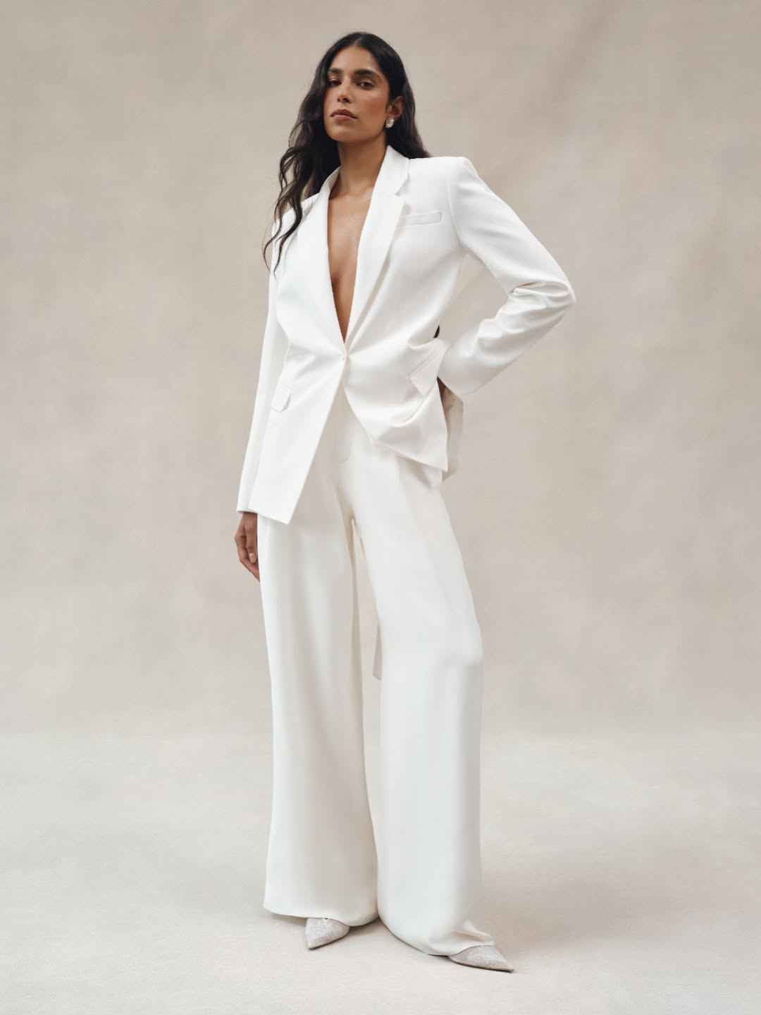 | Tailored Pantsuit | Minimalist, relaxed luxury, soft structure | Brides who love comfort, simplicity, and effortless elegance | City hall weddings, minimalist celebrations, destination weddings |