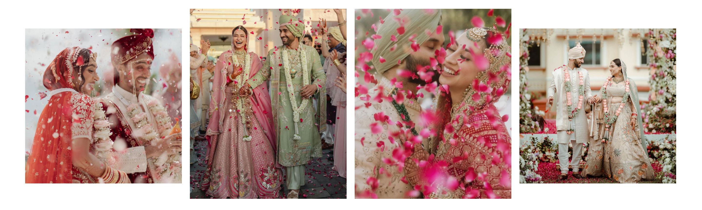 - Bollywood Glam: Turn your wedding into a larger-than-life film set. Use iconic movie posters, a red-carpet entry, and choreographed dances to bring that star-studded charm. Perfect for a high-energy Sangeet.