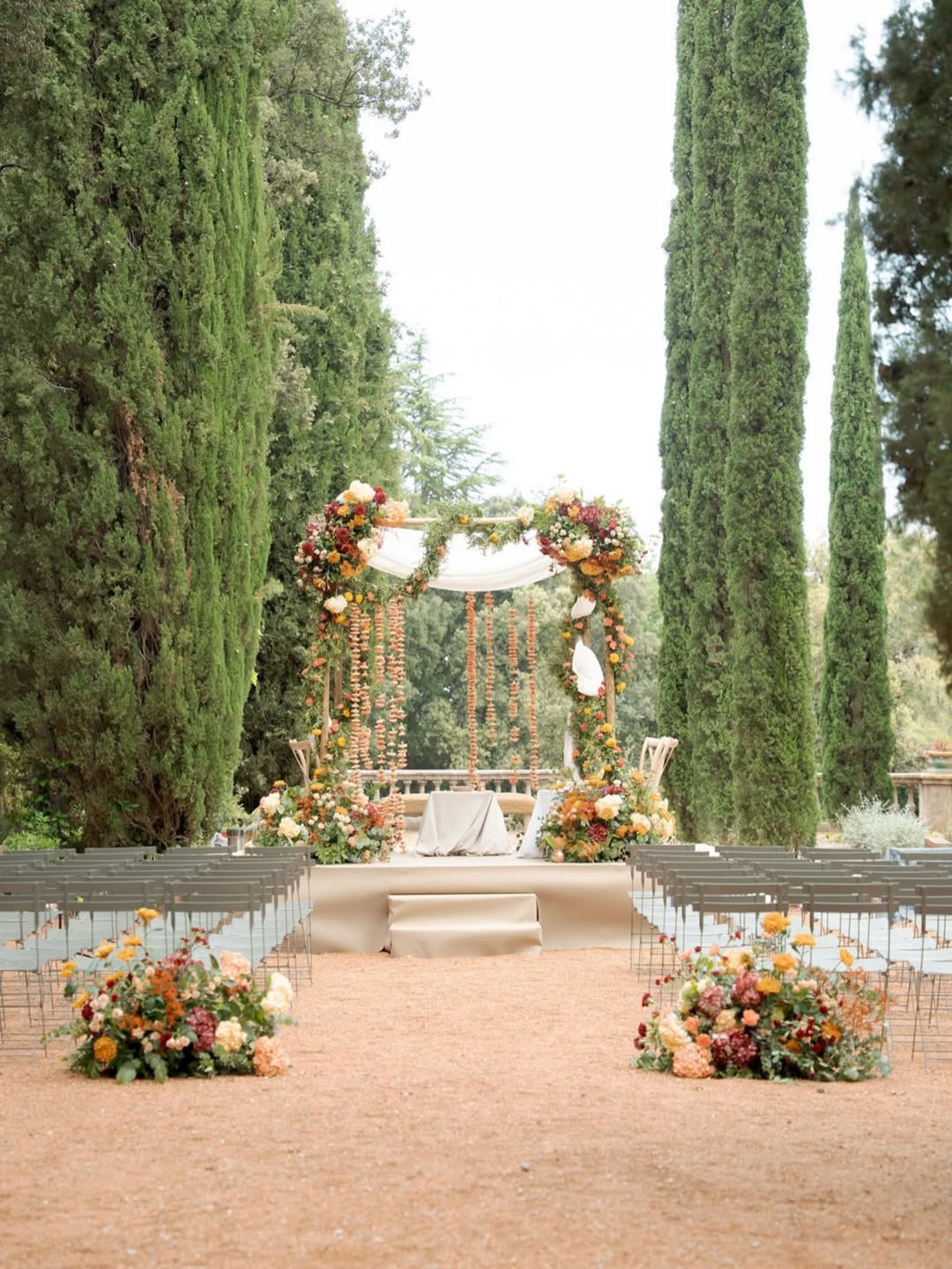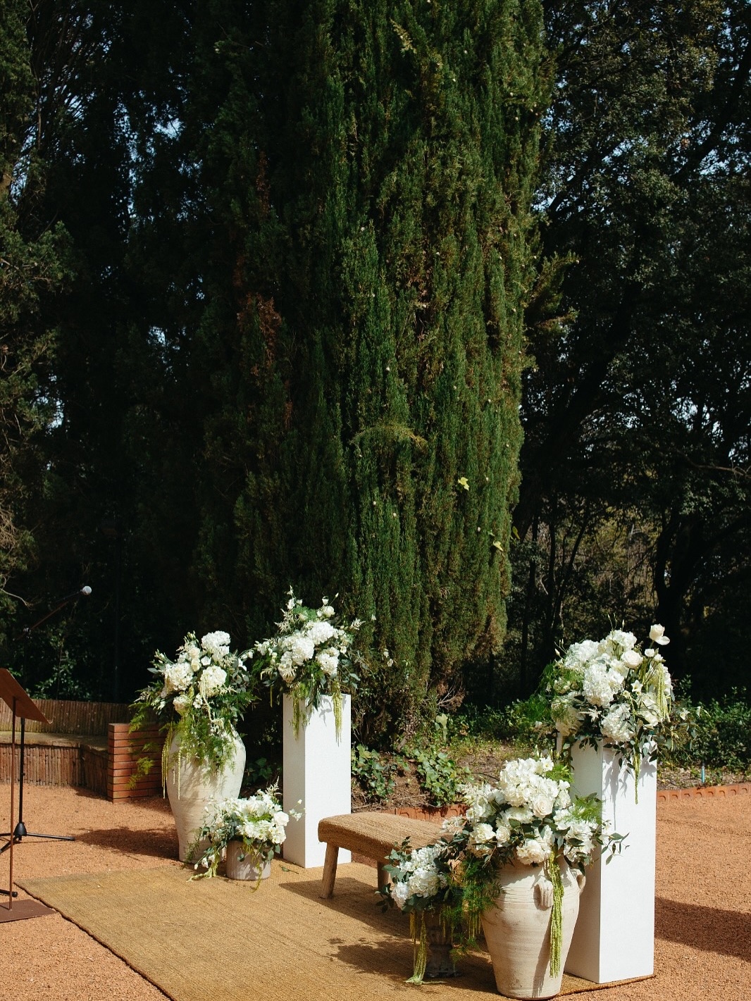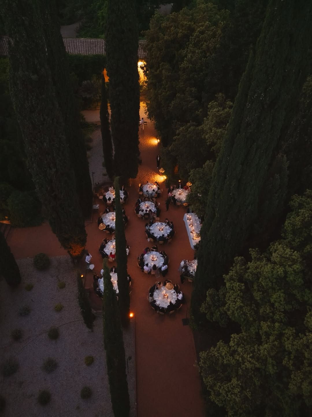 This space was chosen by Bárbara and Cristian for their candlelit dinner. As they put it: "An oasis of peace in the middle of the city. The tall cypress trees and red sand created an incredible and unusual atmosphere. That touch of distinction and originality we were looking for."