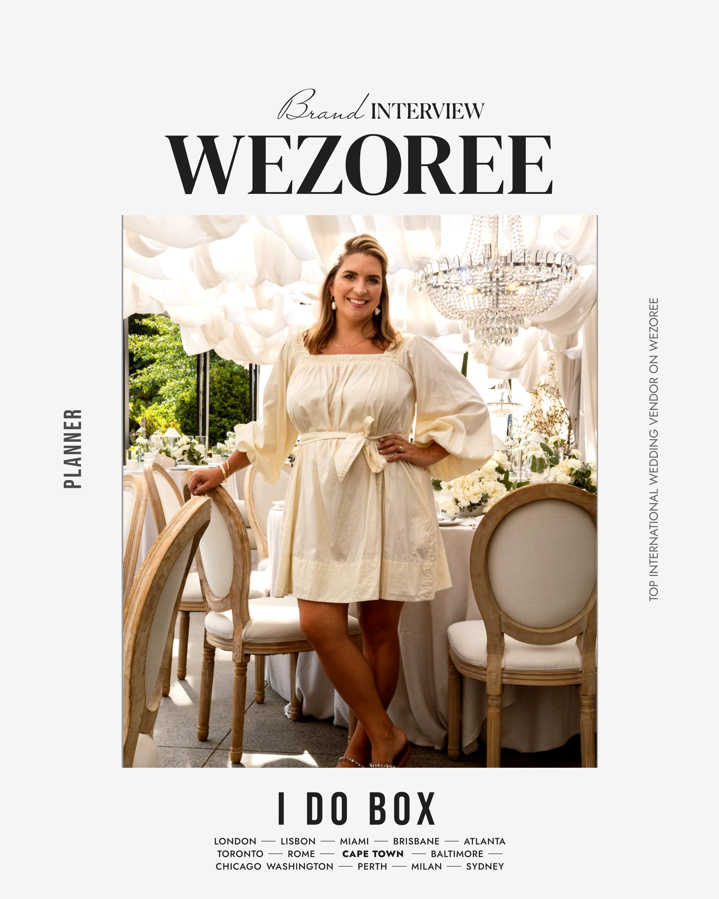 I was born in beautiful Cape Town. As part of a big family who loved to celebrate, I was raised with a passion for marking special occasions. In 2013 I started I Do Box to live my passion of creating beautiful spaces and memorable events for clients around the world. What I love most about my job is that I get to be part of celebrating love stories by crafting breathtaking events and experiences. I love all things to do with creative design, floral, family and celebrations. It’s so special to play an important role in the making of such a memorable moment for a couple in their life and love journey. Outside of work I love entertaining friends and family, relaxing at home, travelling and spending time exploring beautiful Cape Town with my husband, two beautiful girls and our pup.